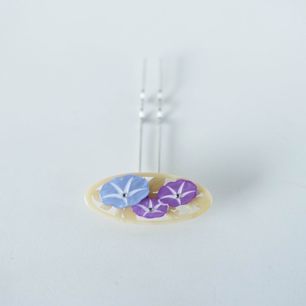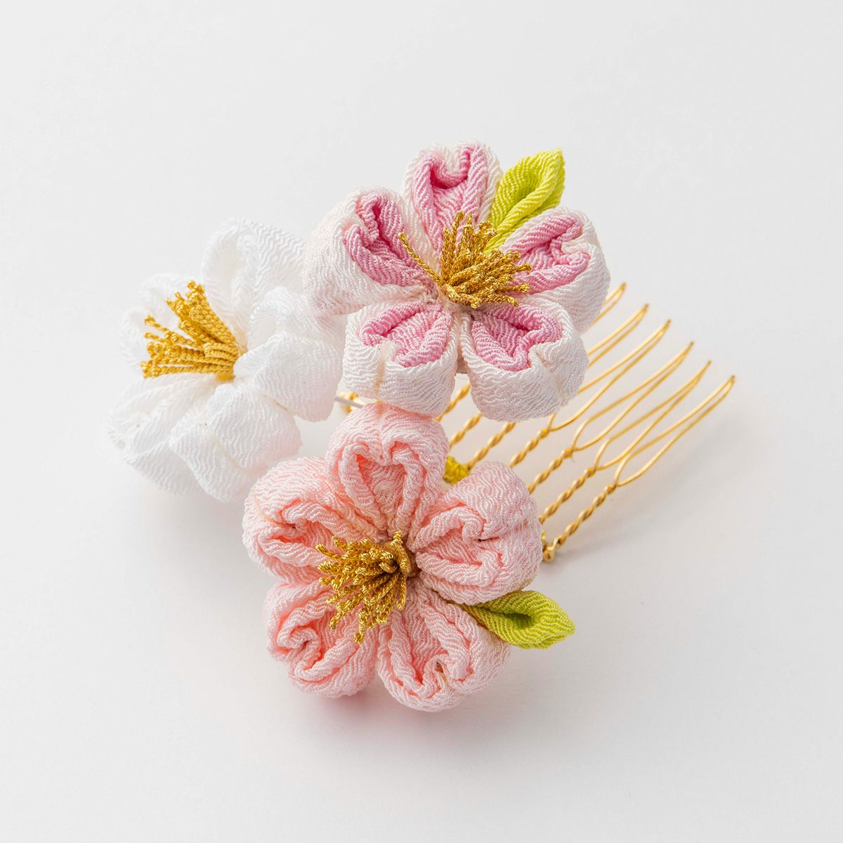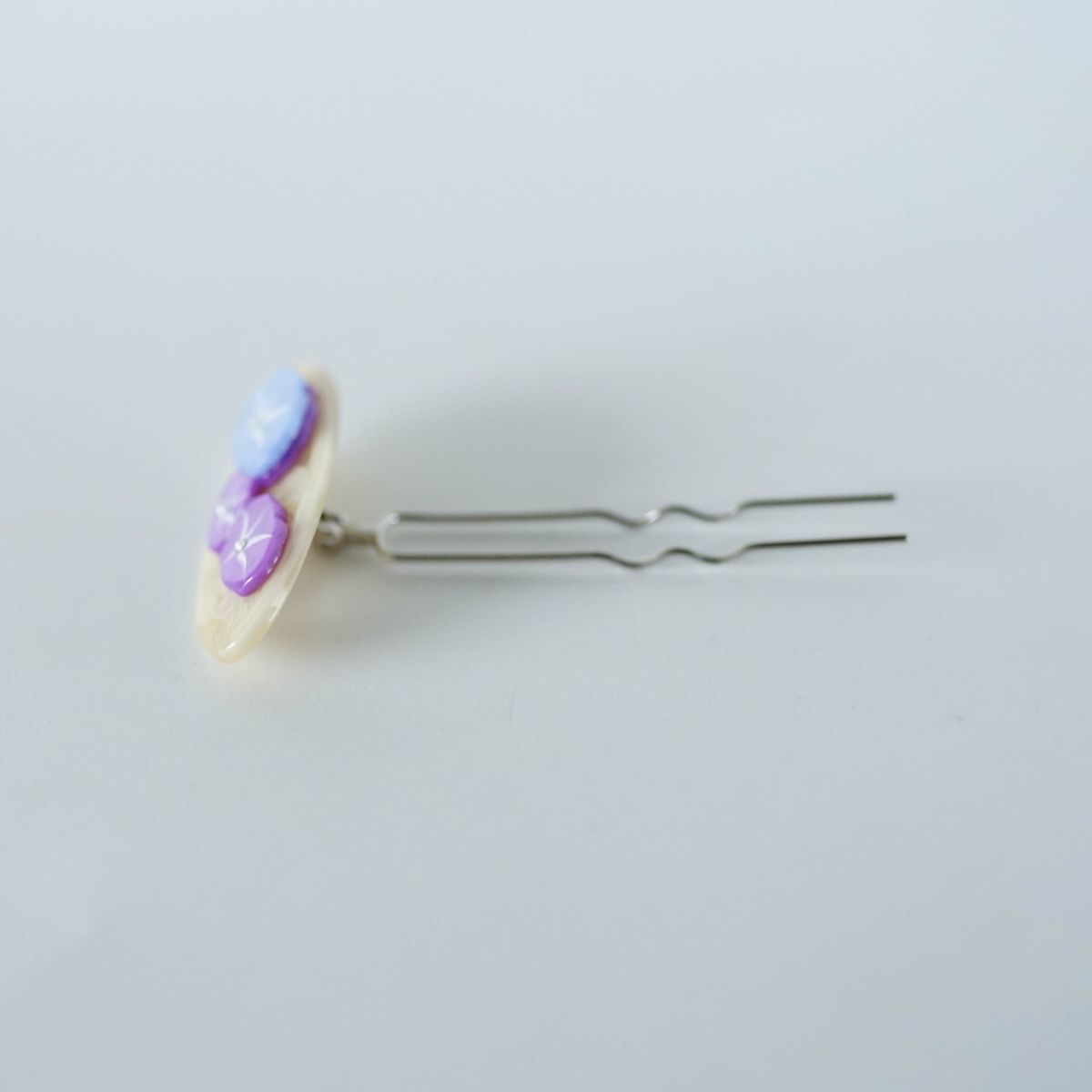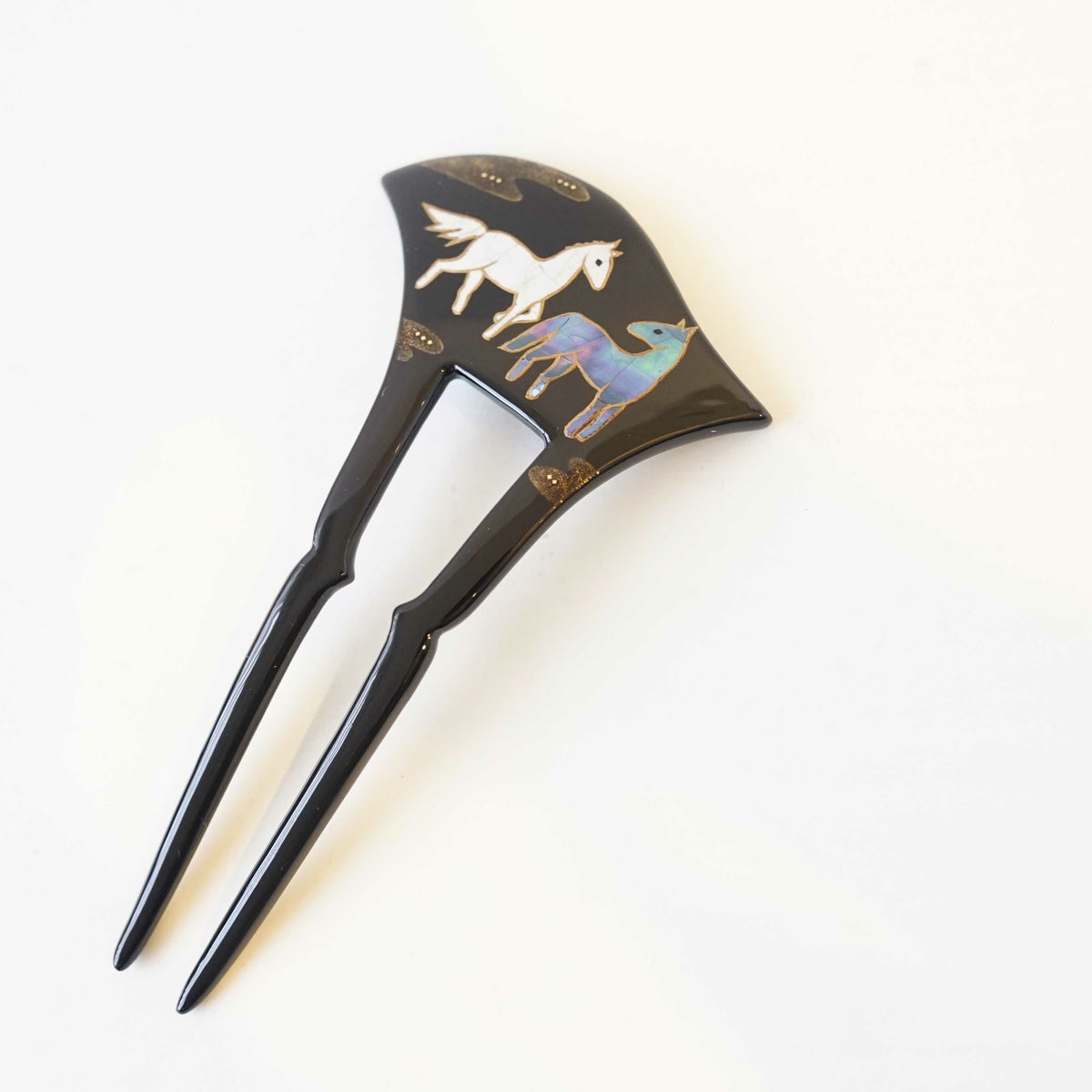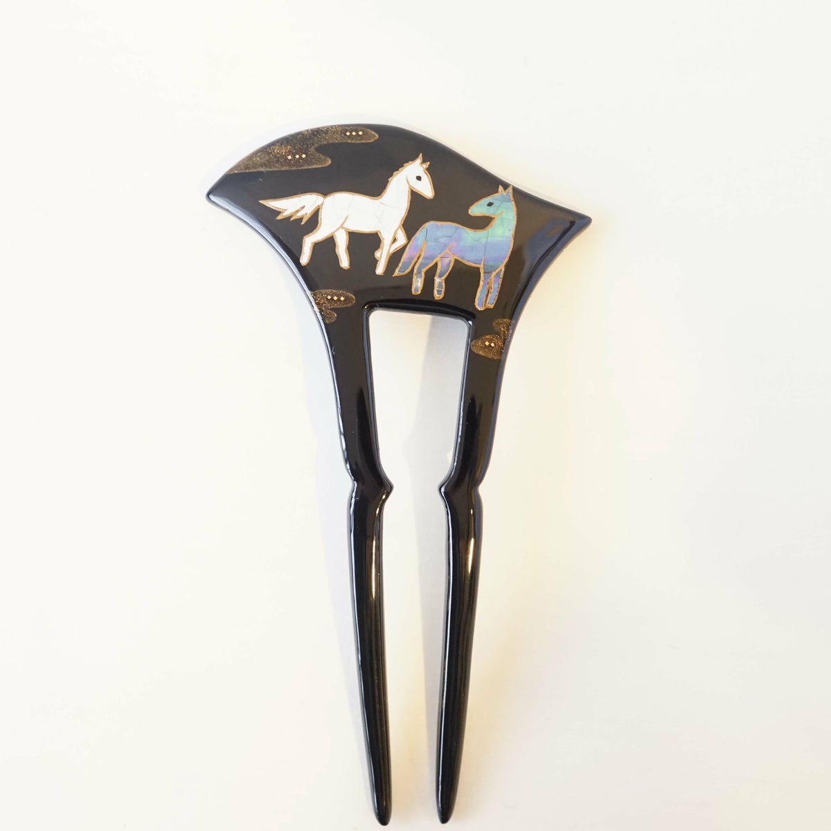 本漆純金蒔絵螺鈿かんざし 波型ピン(小) 三輪桜