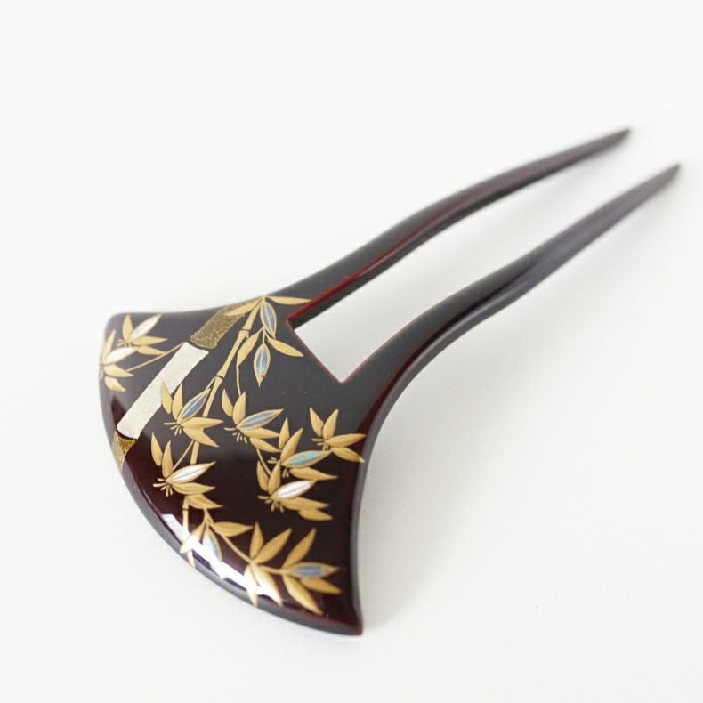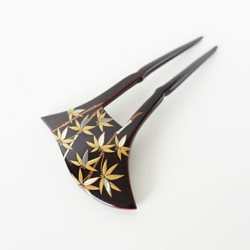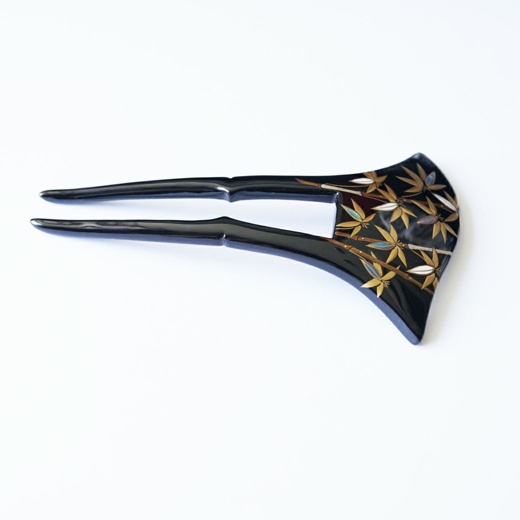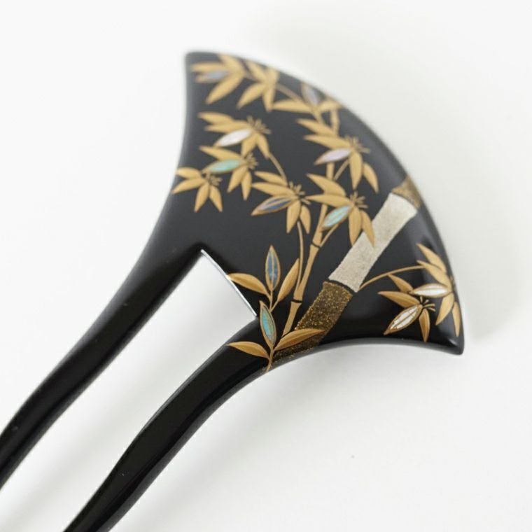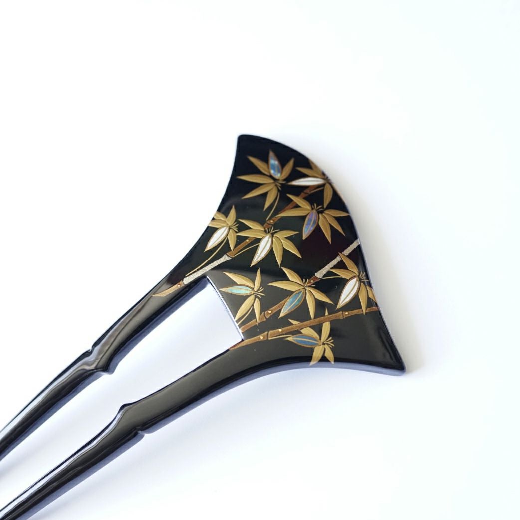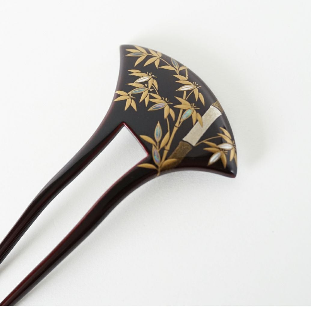 本漆純金蒔絵螺鈿かんざし 波型ピン(大) 竹文様
