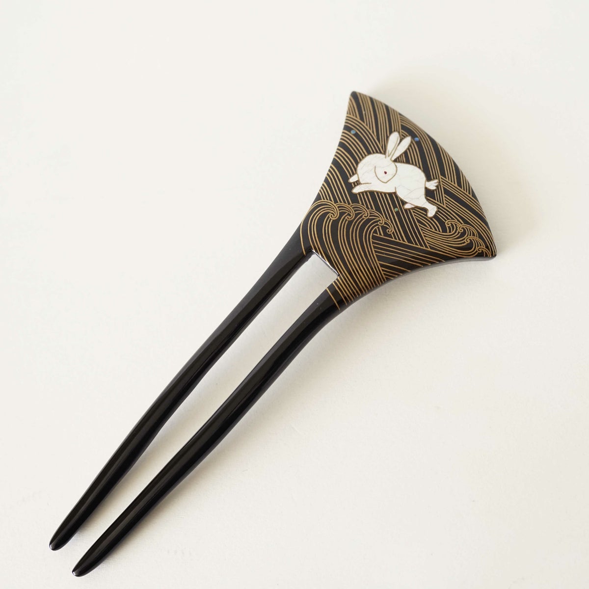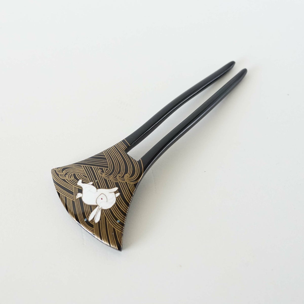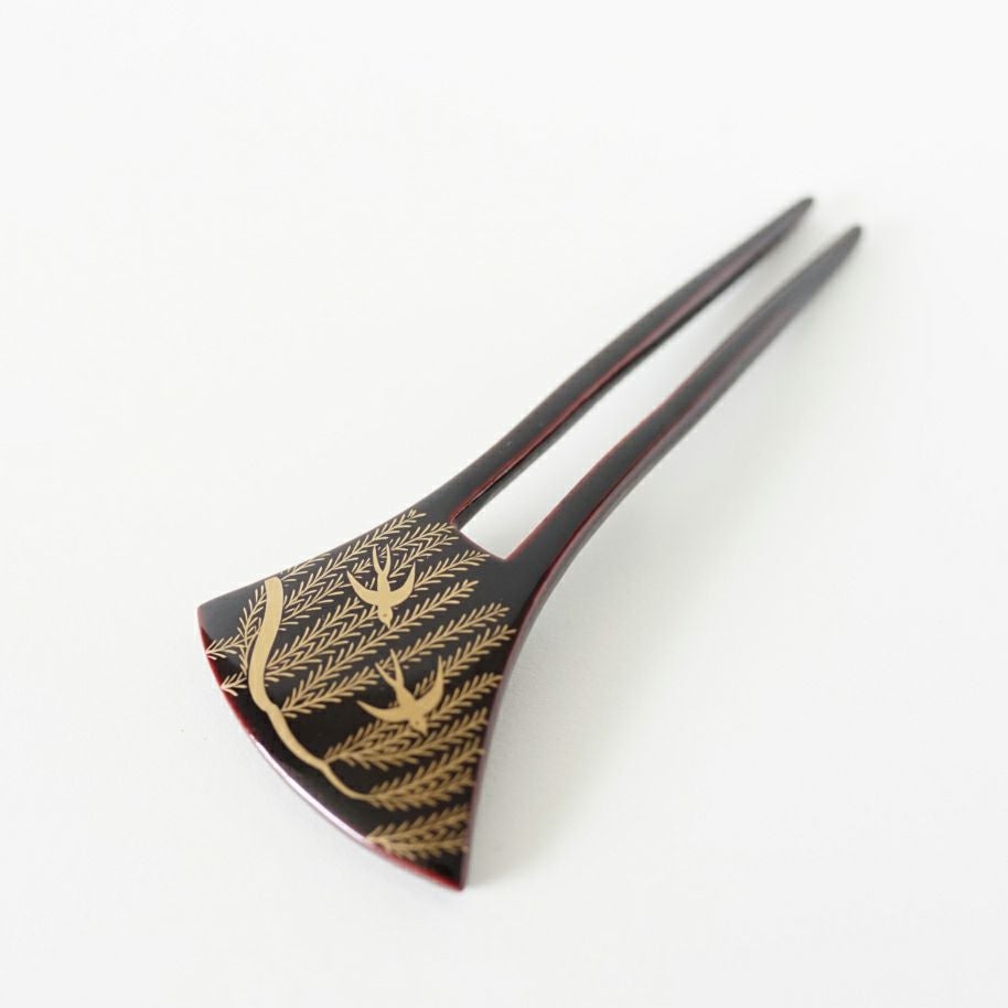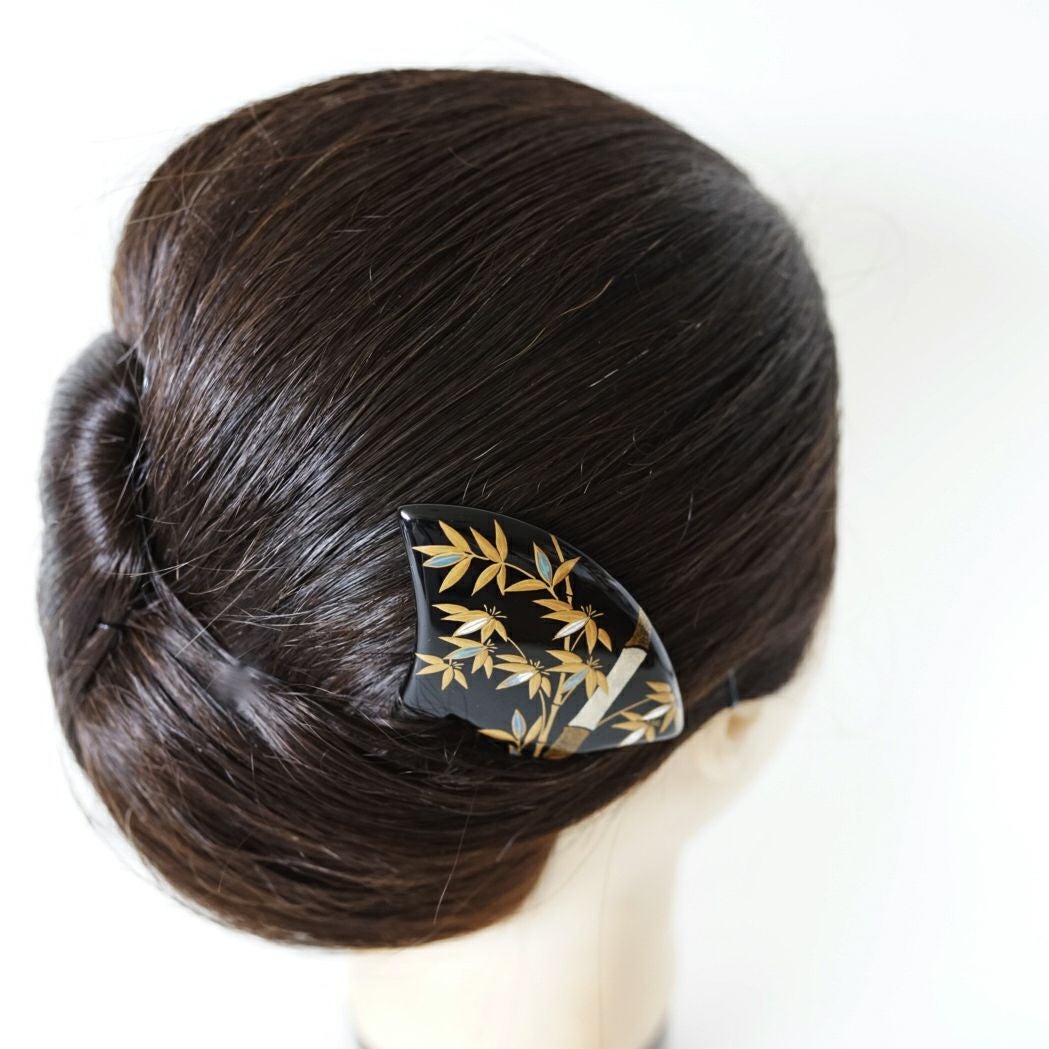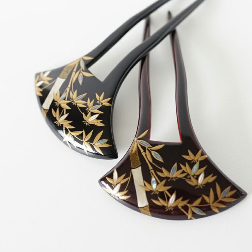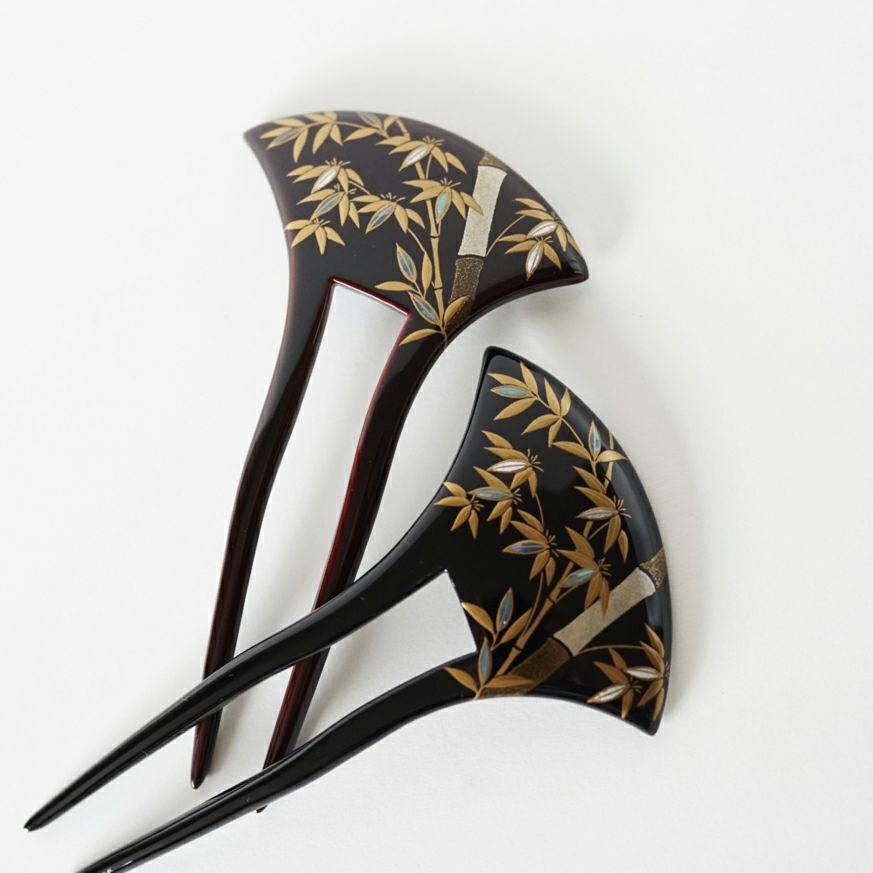 本漆純金蒔絵螺鈿かんざし 波型ピン(大) 竹文様
