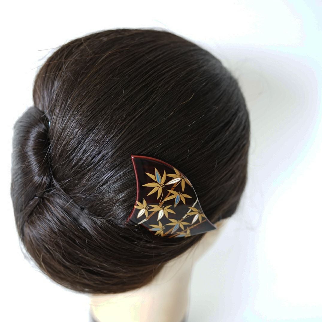本漆純金蒔絵螺鈿かんざし 銀杏ピン(大) 竹文様