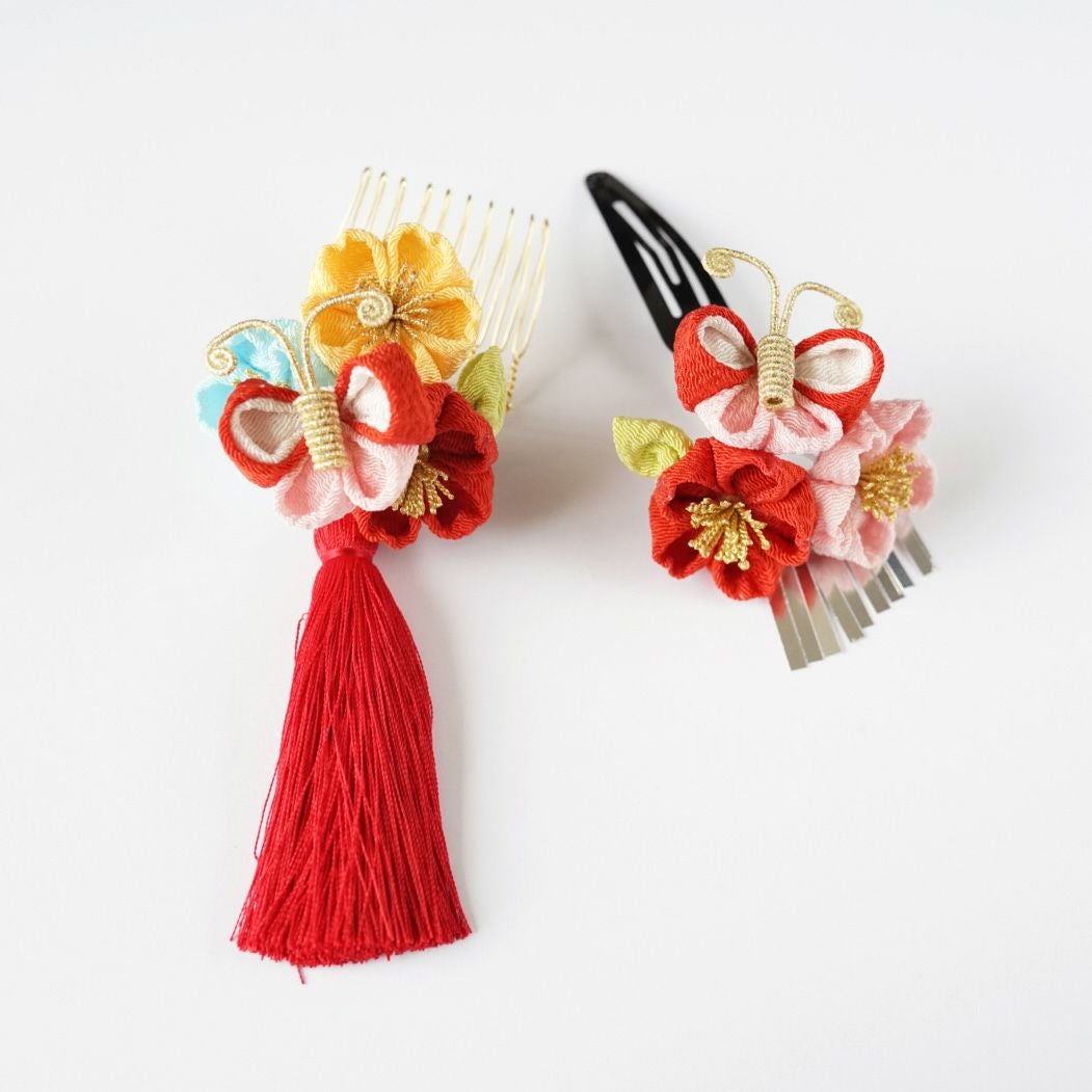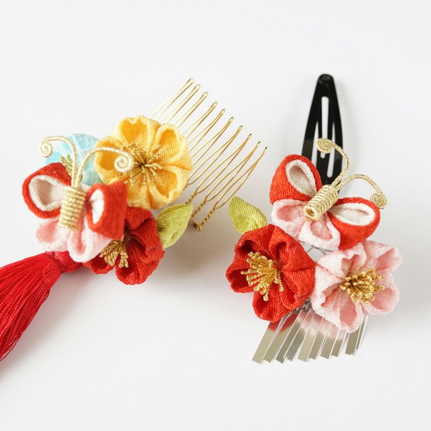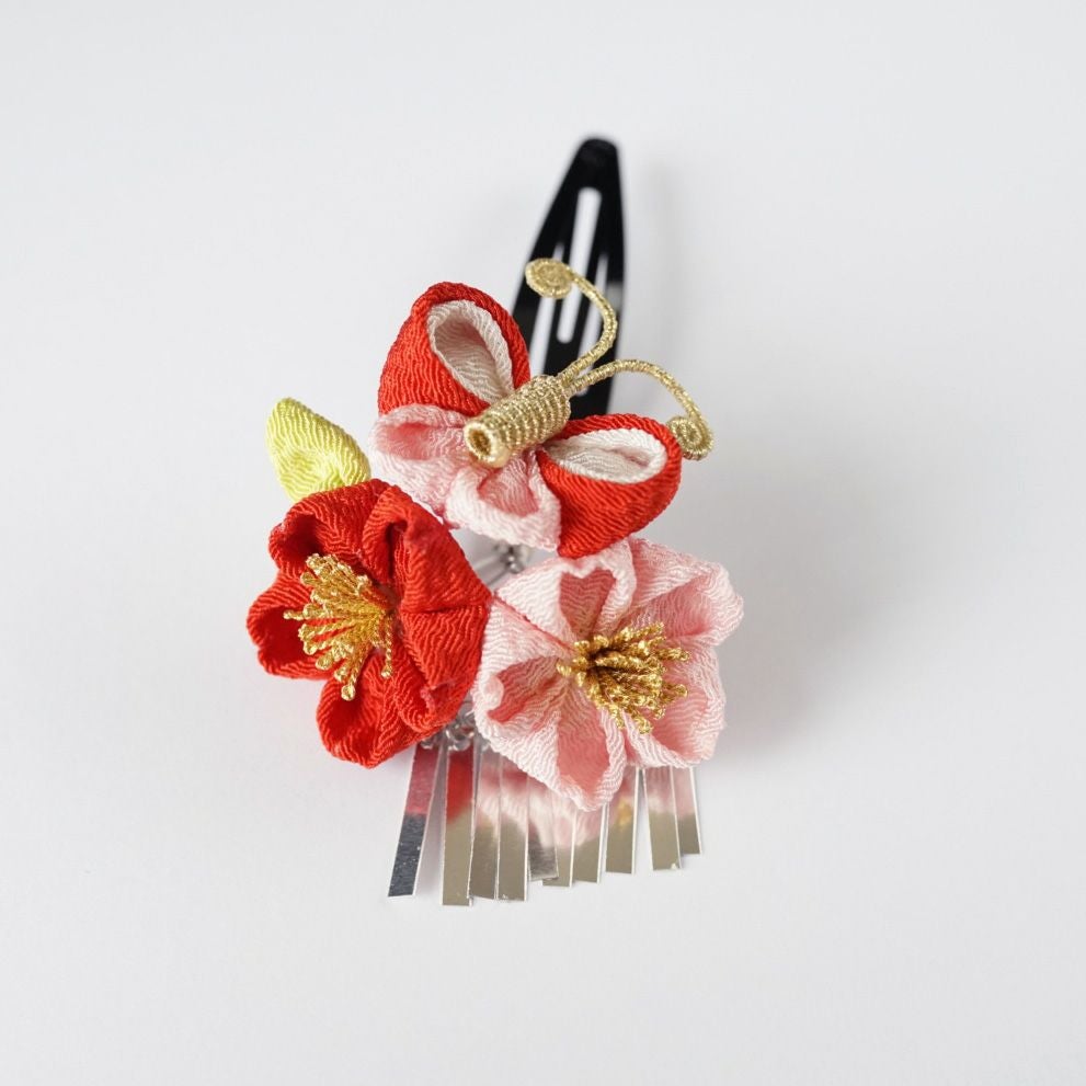 三輪梅クリップ(ブルー・朱系)
