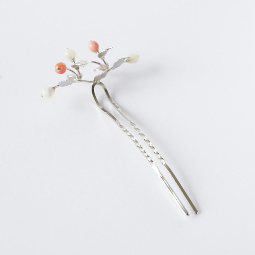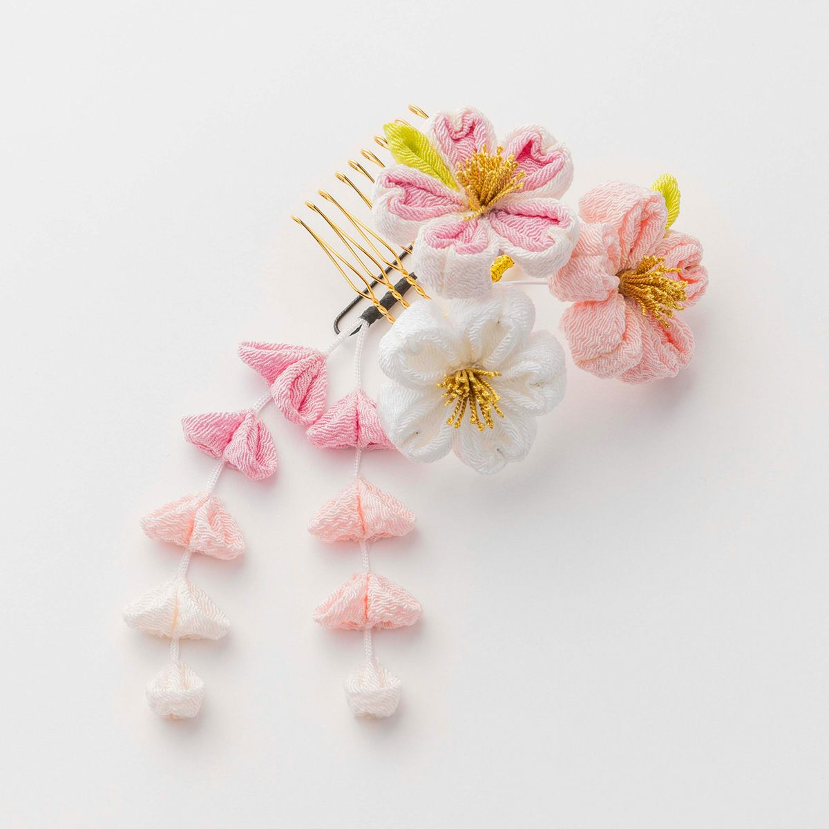 白蝶貝三輪桜 花月かんざし(パール下がり付き)
