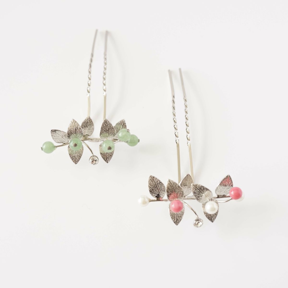 白蝶貝 桜・牡丹 花月かんざし(パール下がり付き)