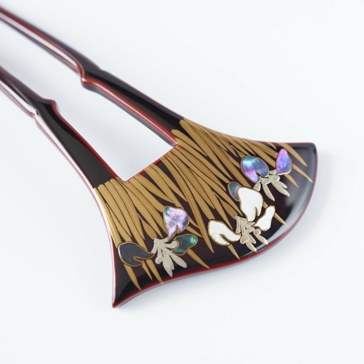 本漆純金蒔絵螺鈿かんざし 波型ピン(中) 竹林文様