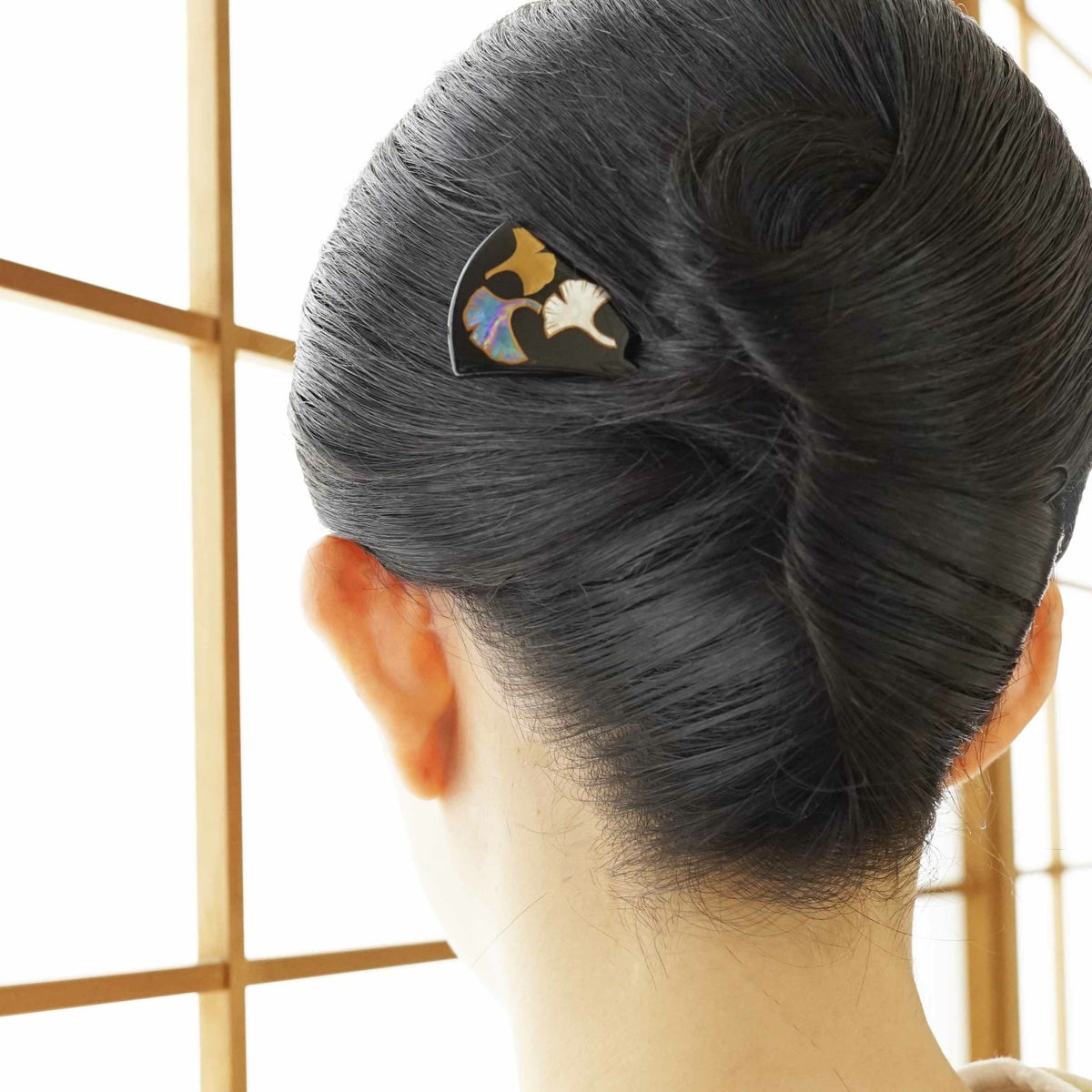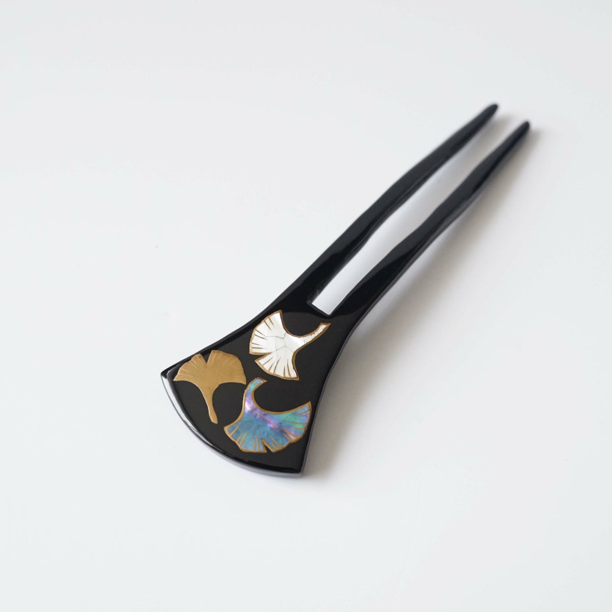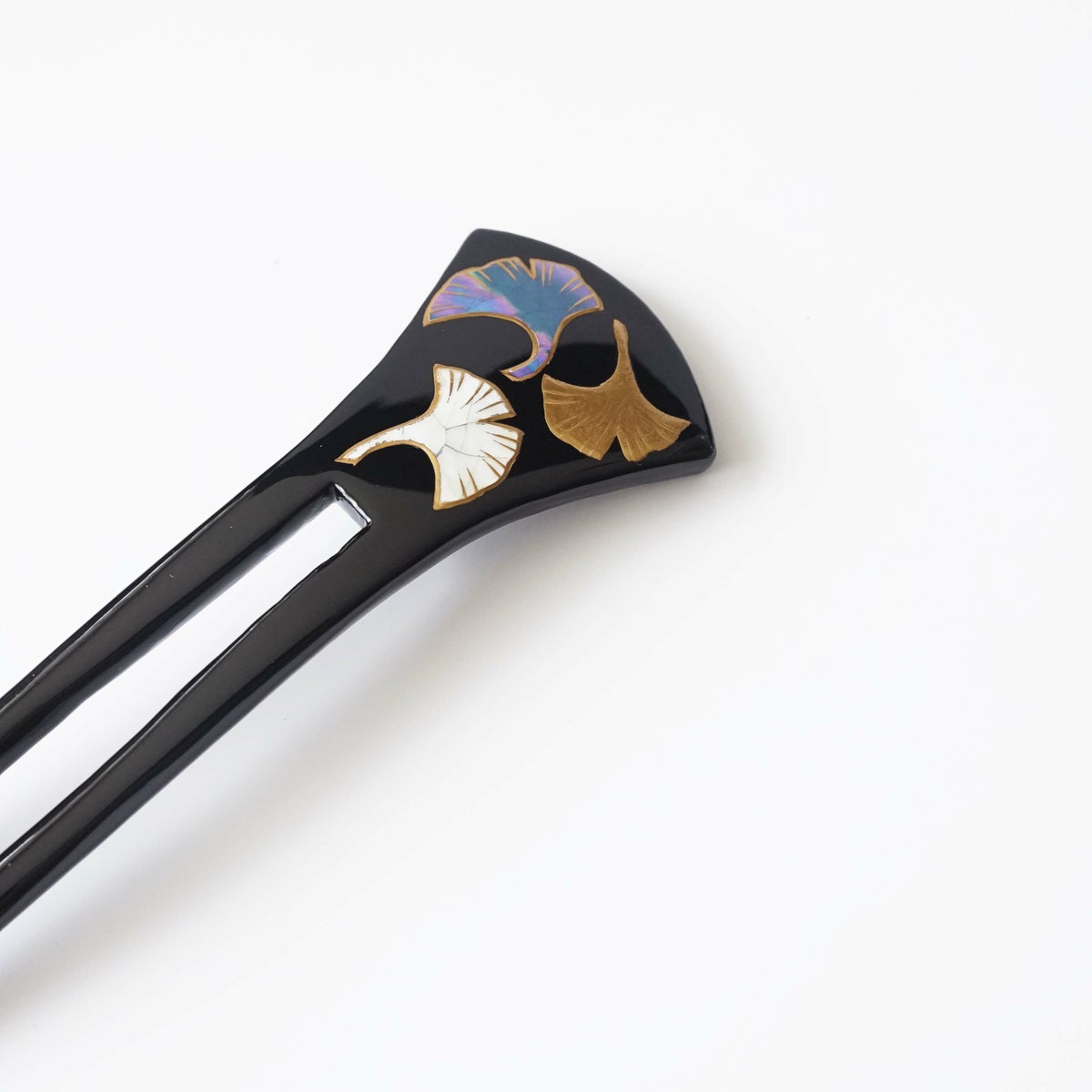 本漆純金蒔絵螺鈿かんざし 銀杏ピン 万寿菊文様