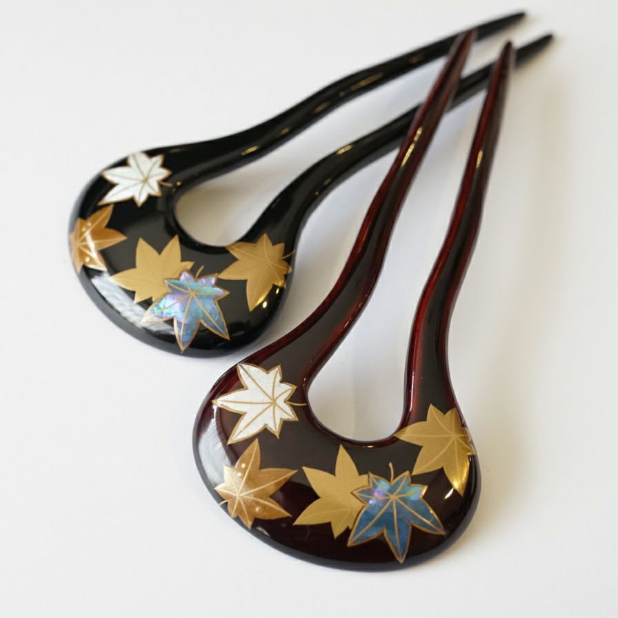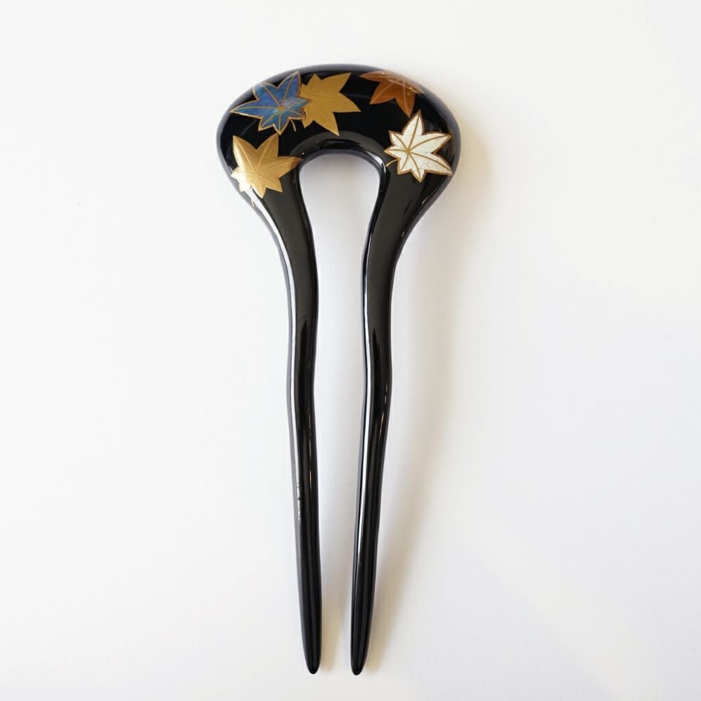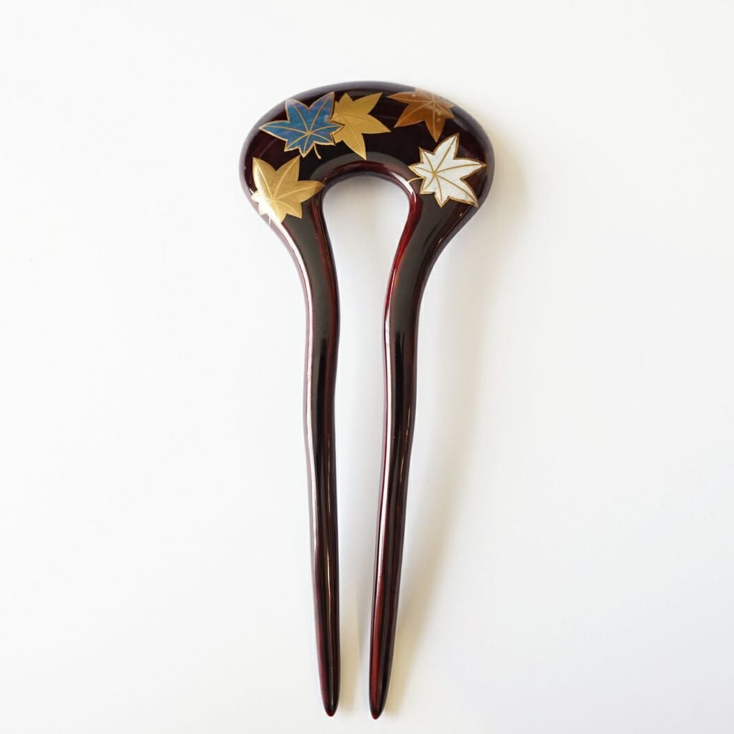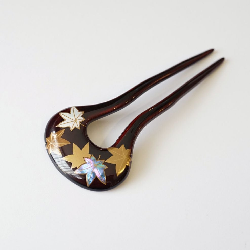本漆純金蒔絵螺鈿かんざし 角丸ピン 紅葉文様