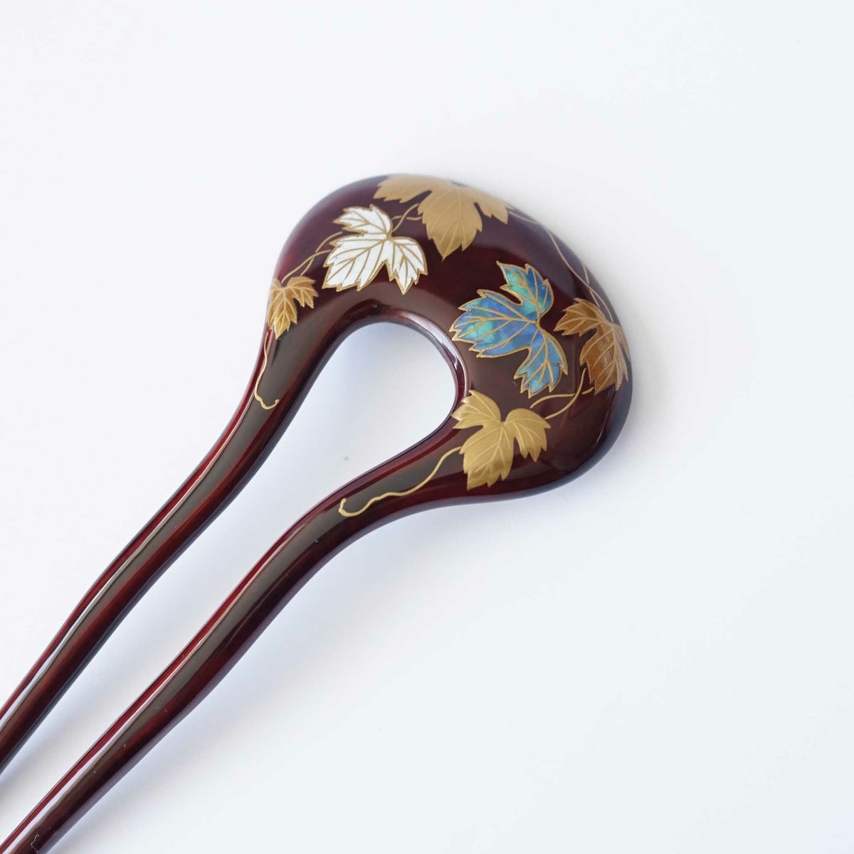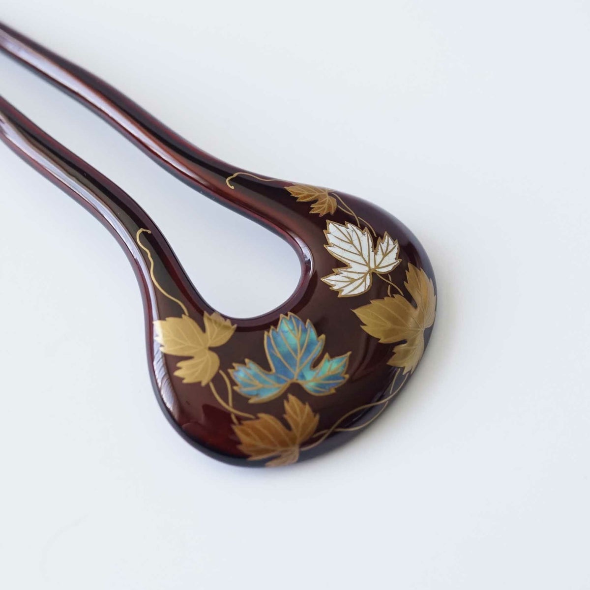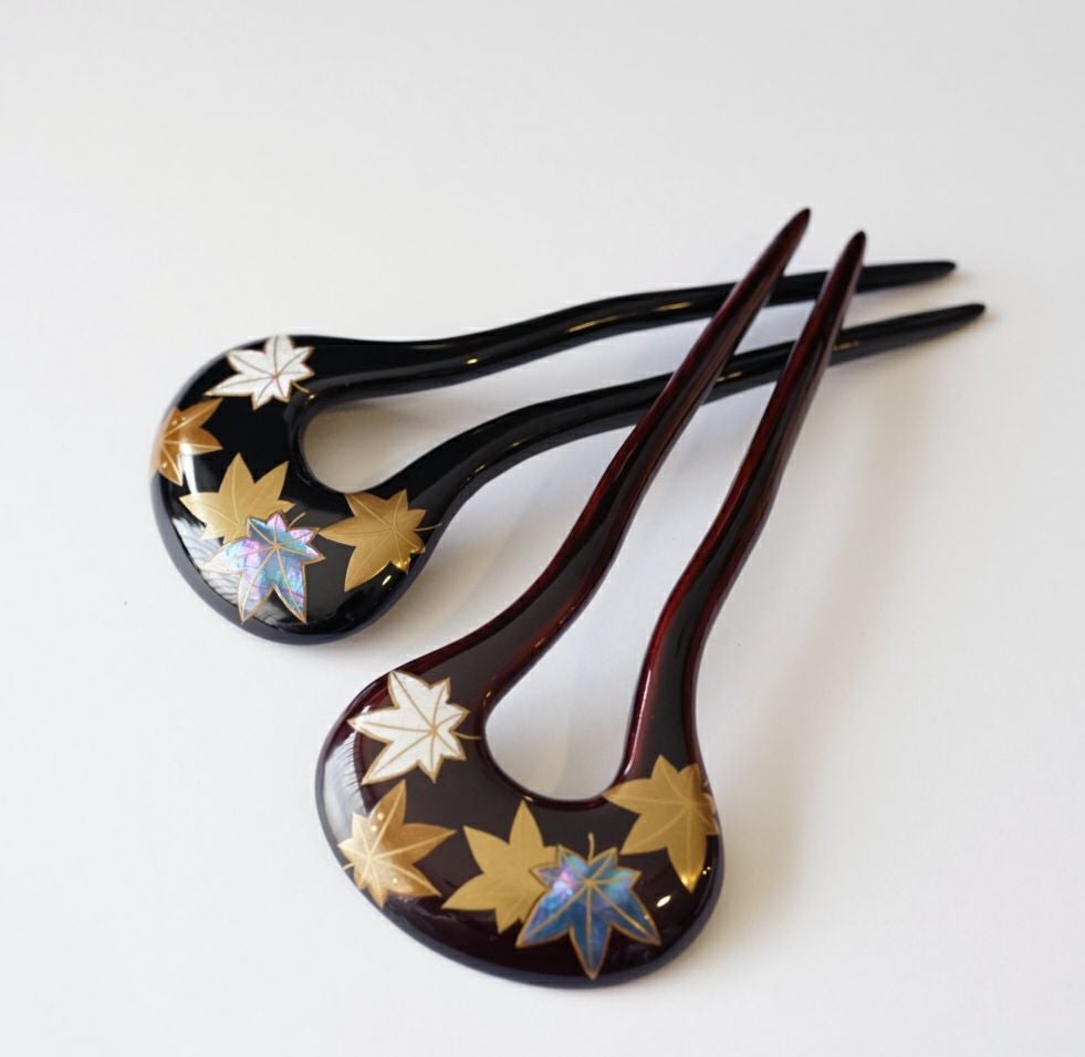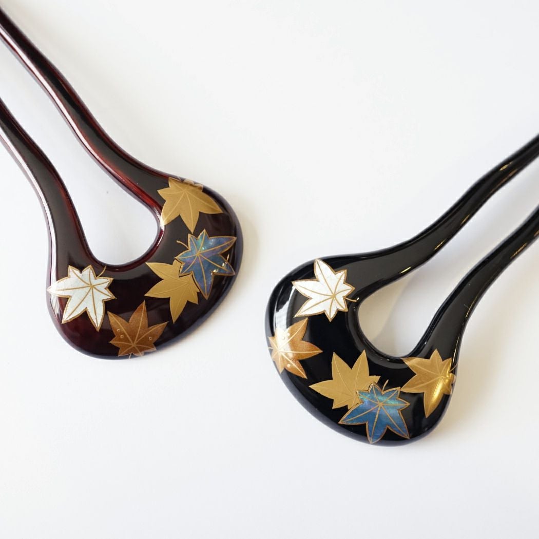本漆純金蒔絵螺鈿かんざし 角丸ピン 紅葉文様