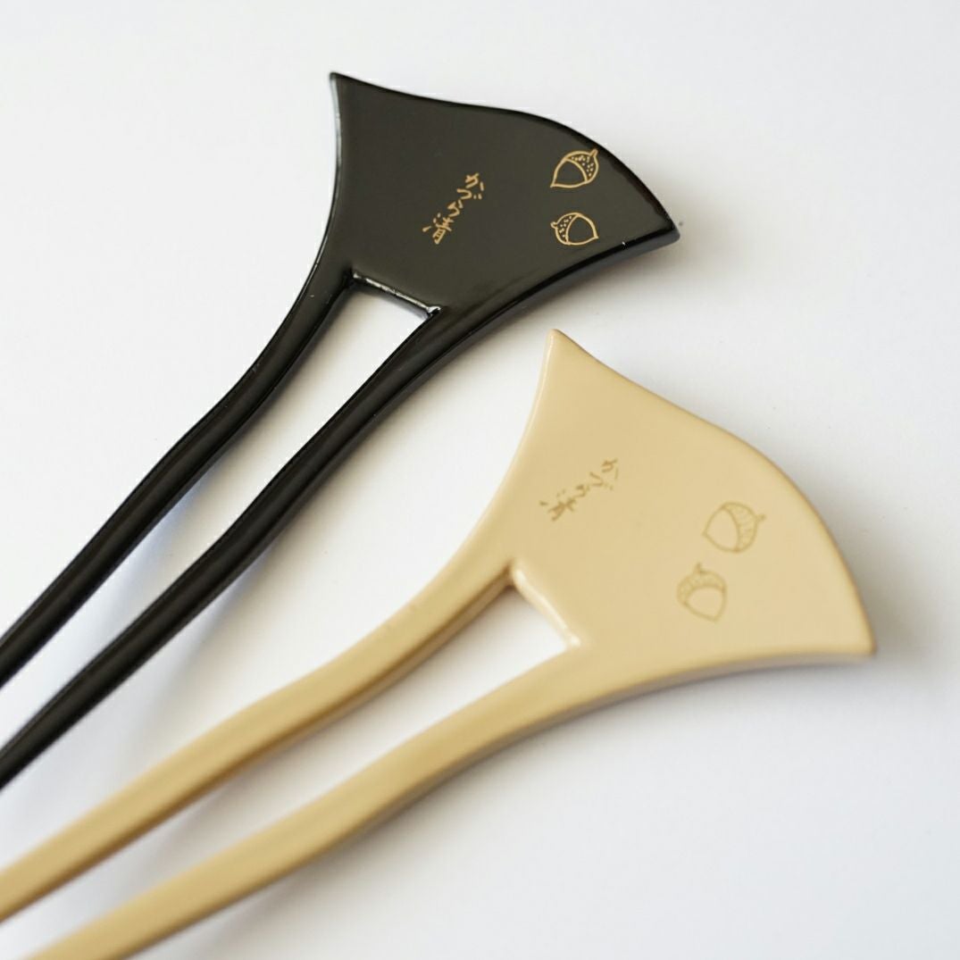 本漆純金蒔絵螺鈿かんざし 波型ピン(小) りすに団栗
