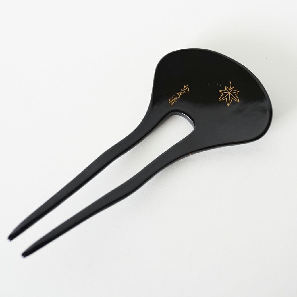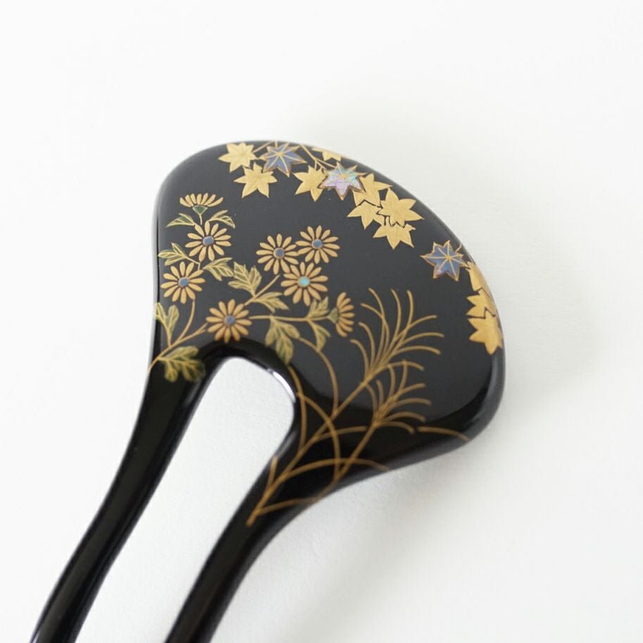 本漆純金蒔絵螺鈿かんざし 幅広輪ピン 紅葉文様