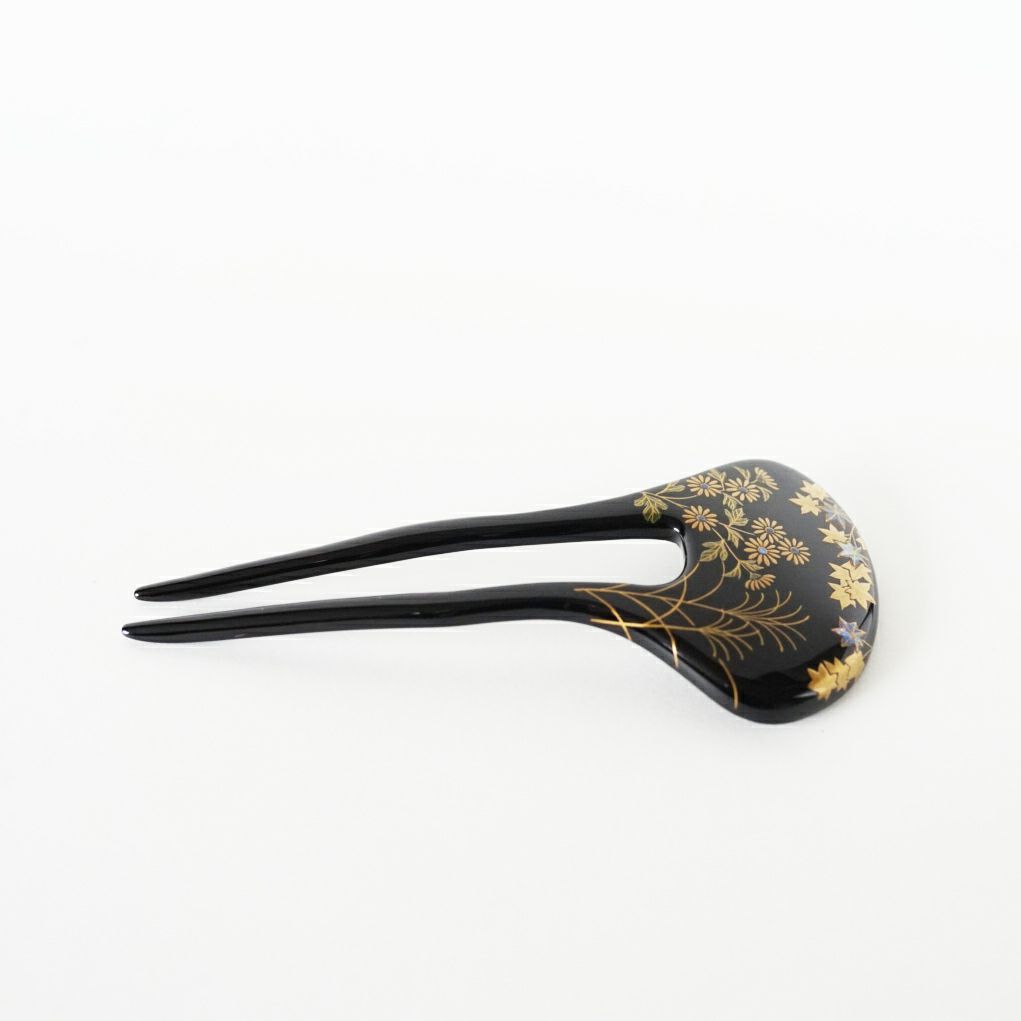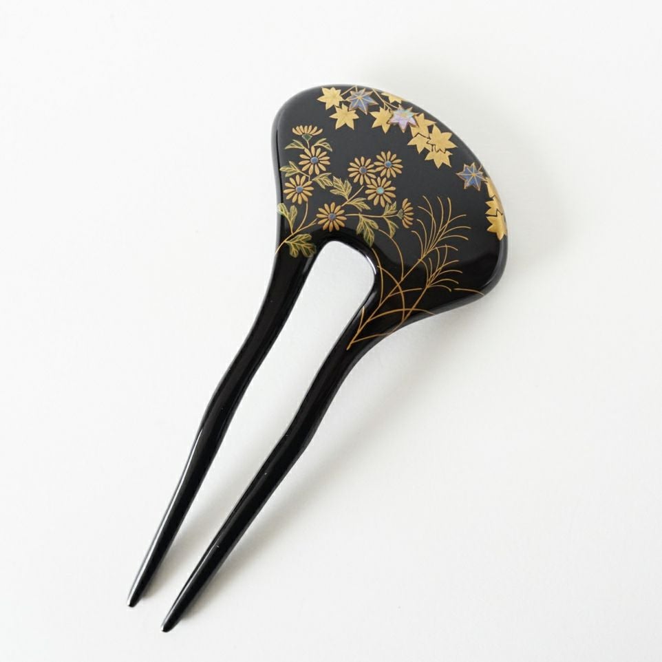 本漆純金蒔絵螺鈿かんざし 銀杏ピン(小) 秋草図蒔絵