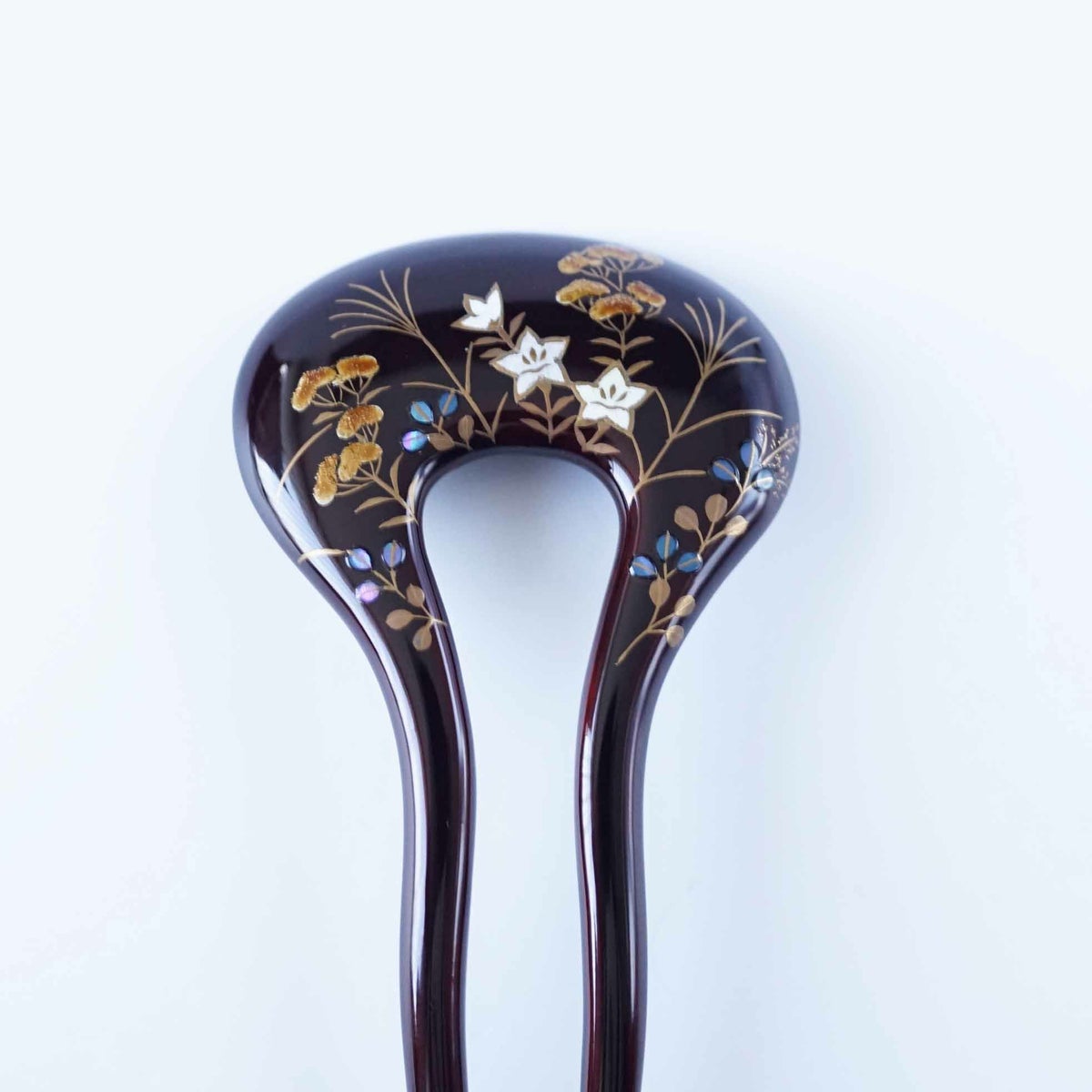 本漆純金蒔絵螺鈿かんざし 波型ピン(中) 万寿菊文様