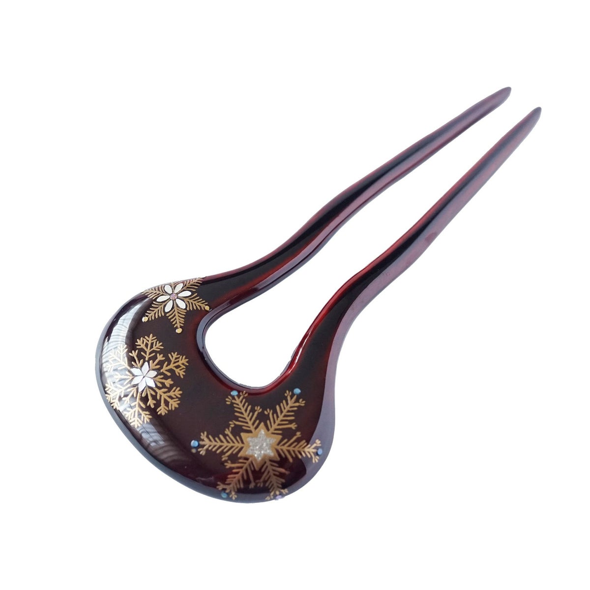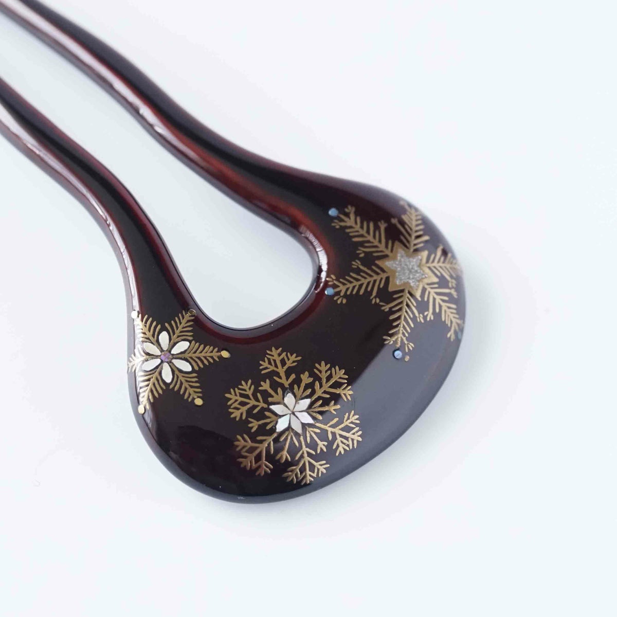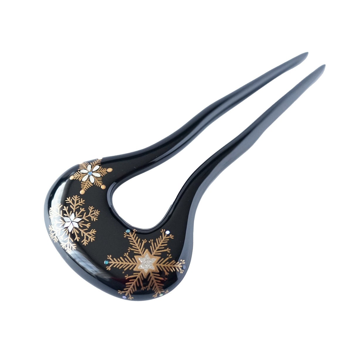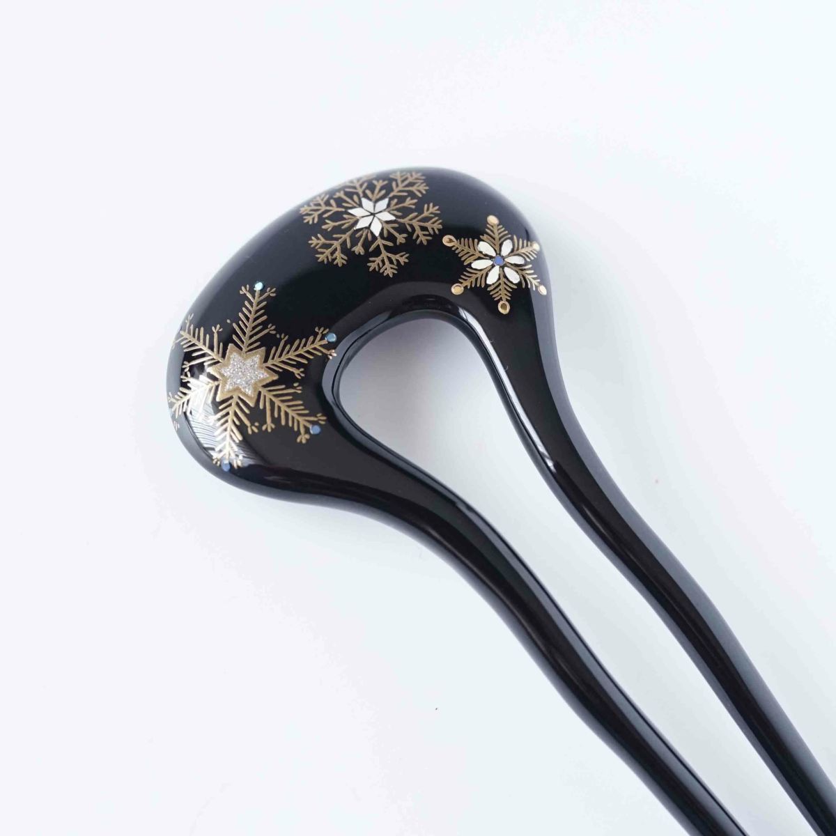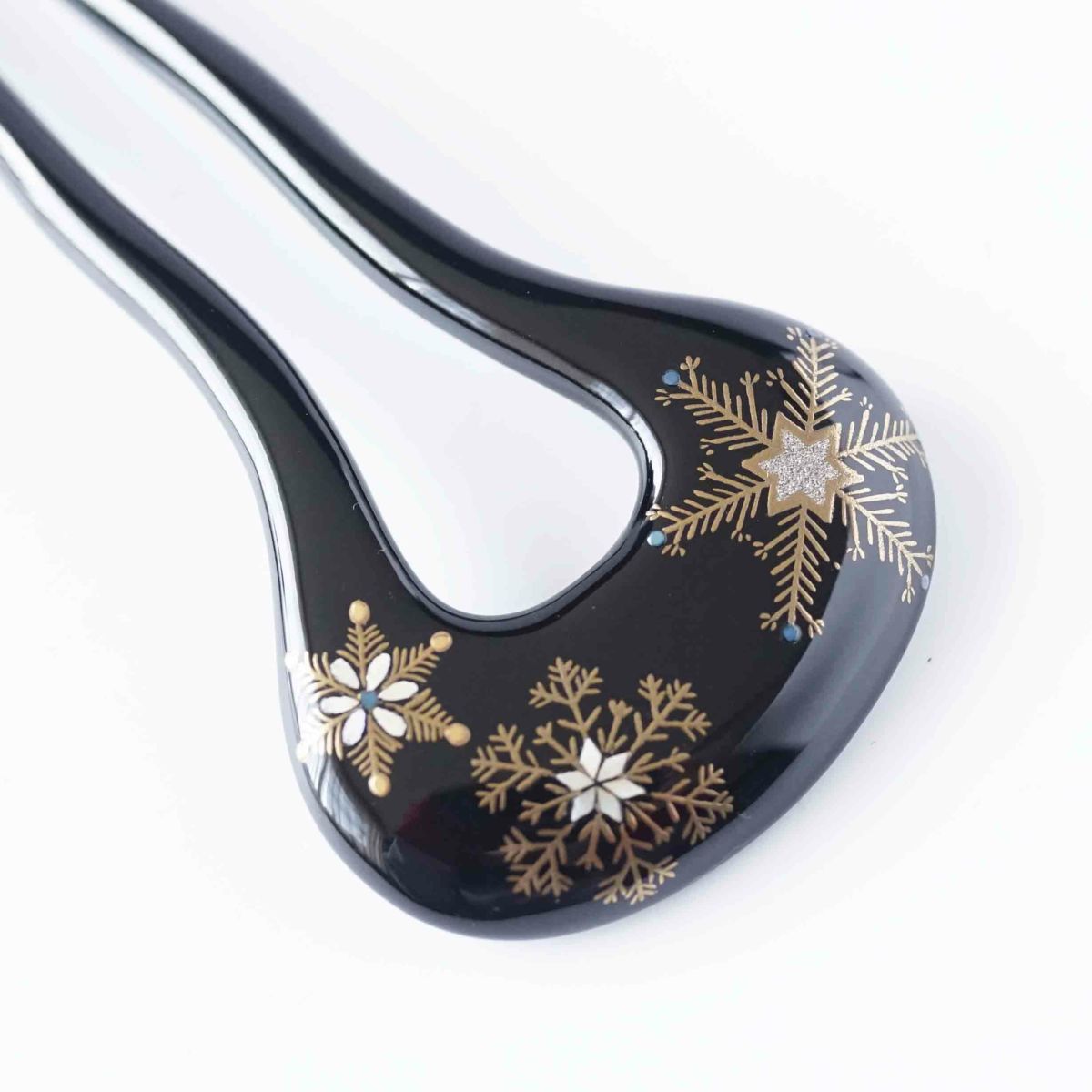 本漆純金蒔絵螺鈿かんざし 幅広輪ピン 雪華文様