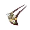 5. 本漆純金蒔絵螺鈿かんざし 波型ピン(中) 万寿菊文様(溜色)