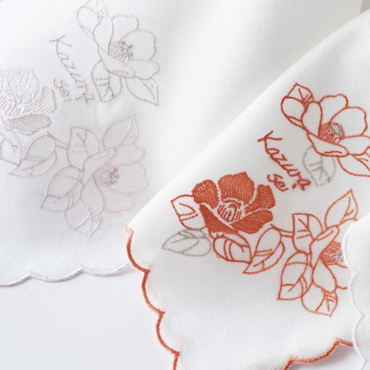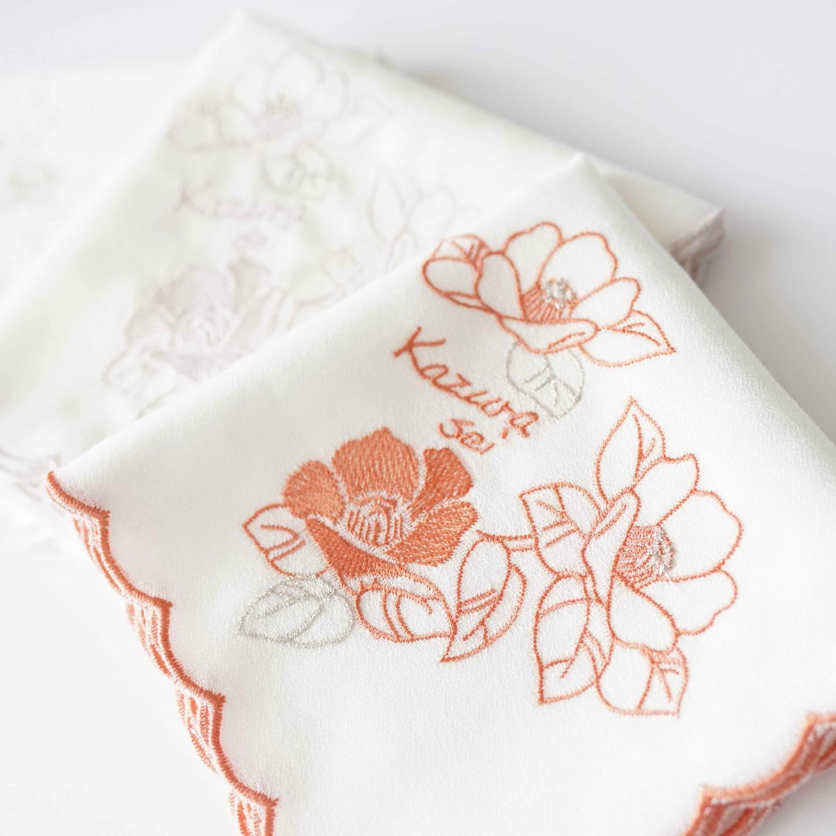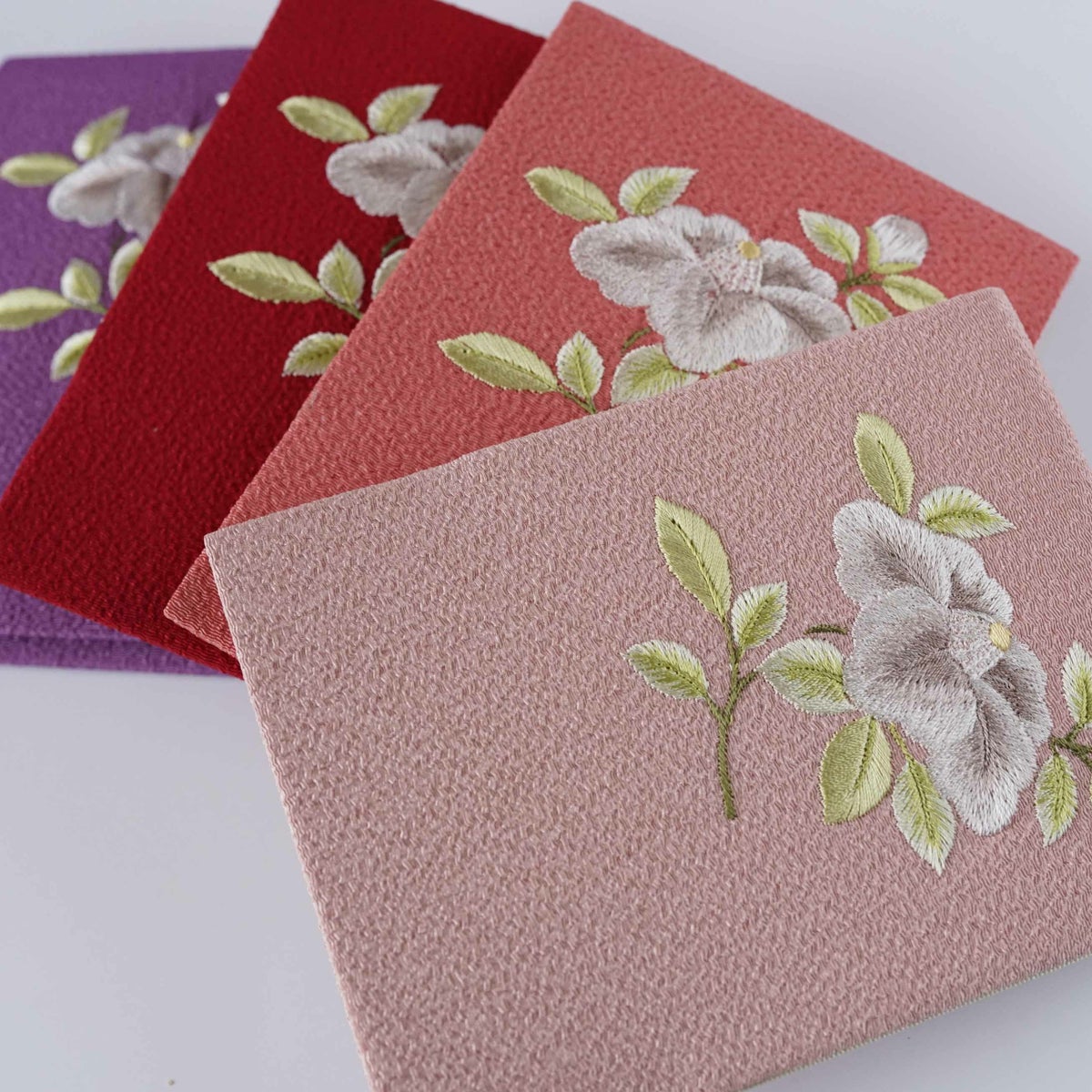 美しく染め上げられた糸を使い、丁寧な機械刺繍でオリジナルの図案を施しています。刺繍の小物は手元にあるだけで優雅な気持ちに。