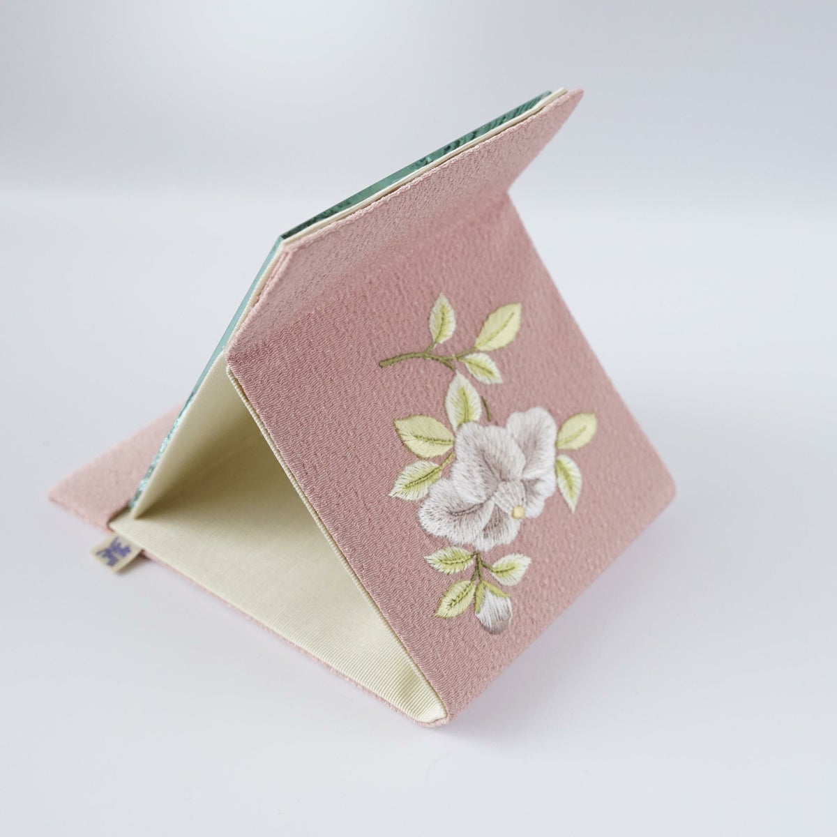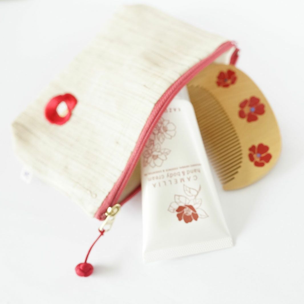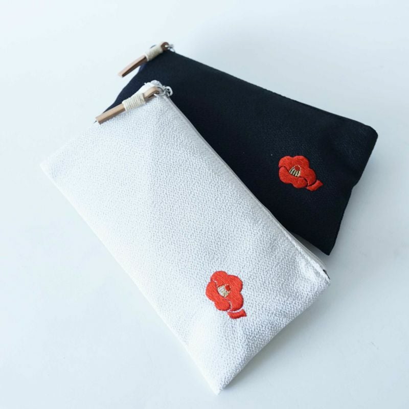 美しく染め上げられた糸を使い、丁寧な機械刺繍でオリジナルの図案を施しています。刺繍の小物は手元にあるだけで優雅な気持ちに。
