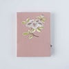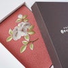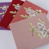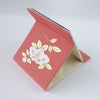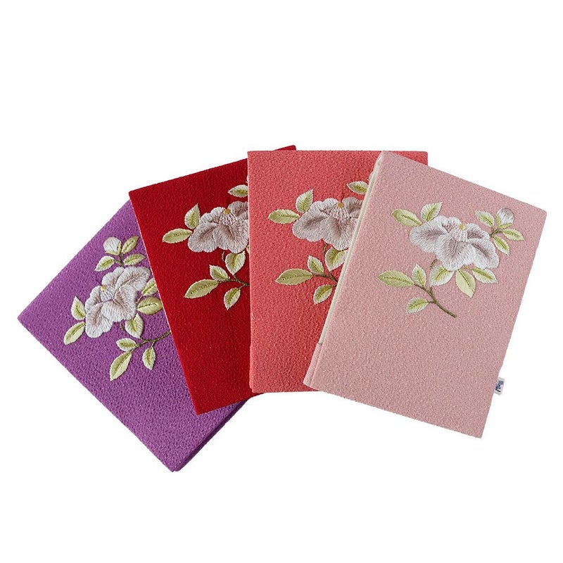 ちりめん生地に上品な椿刺繍の立て鏡。