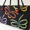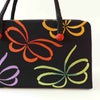 黒地に色とりどり蝶の和装バッグ