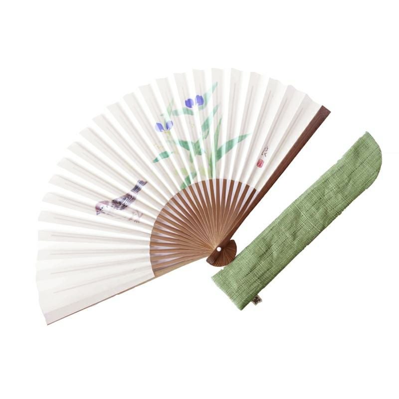 可愛らしい雀と露草が描かれた扇子。