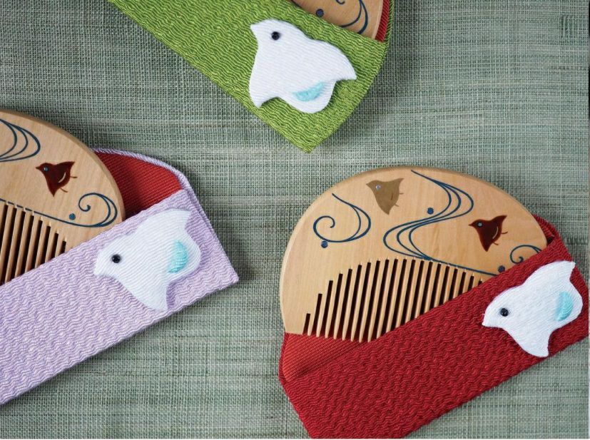 本つげ櫛に蒔絵を施した、かづら清オリジナルのつげ櫛。