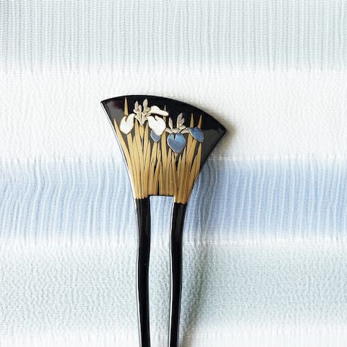 本漆純金蒔絵螺鈿かんざし 銀杏ピン 正倉院文様