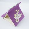 ちりめん生地に上品な椿刺繍の立て鏡。