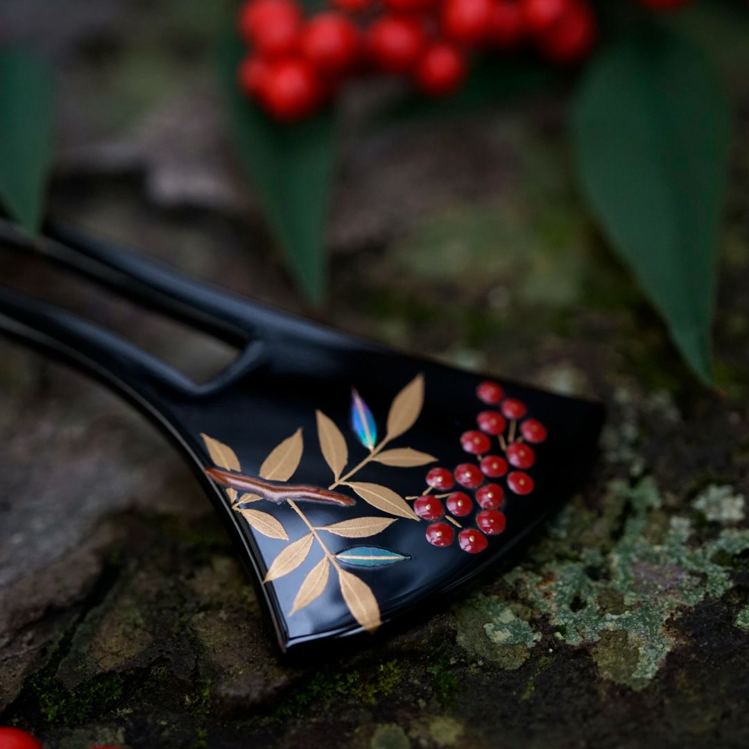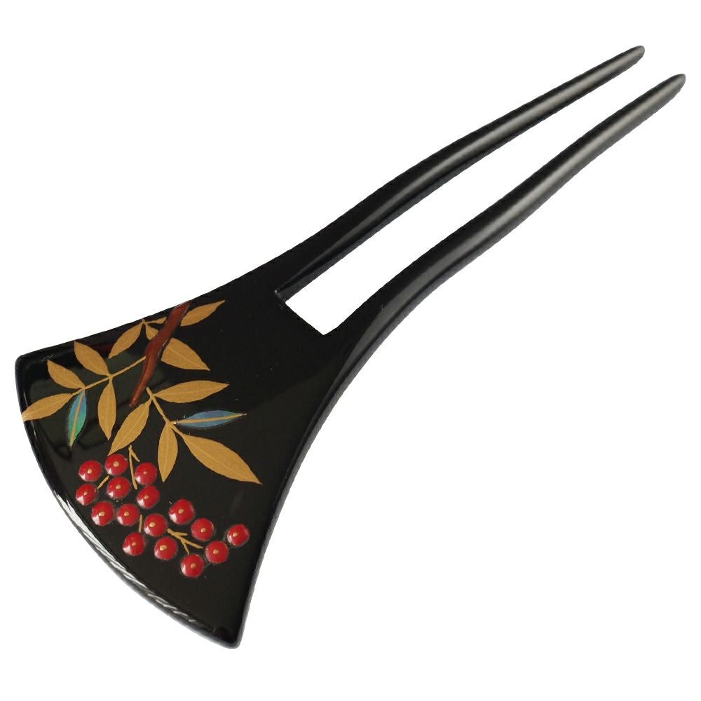 本漆純金蒔絵螺鈿かんざし 銀杏ピン 宝尽くし文様