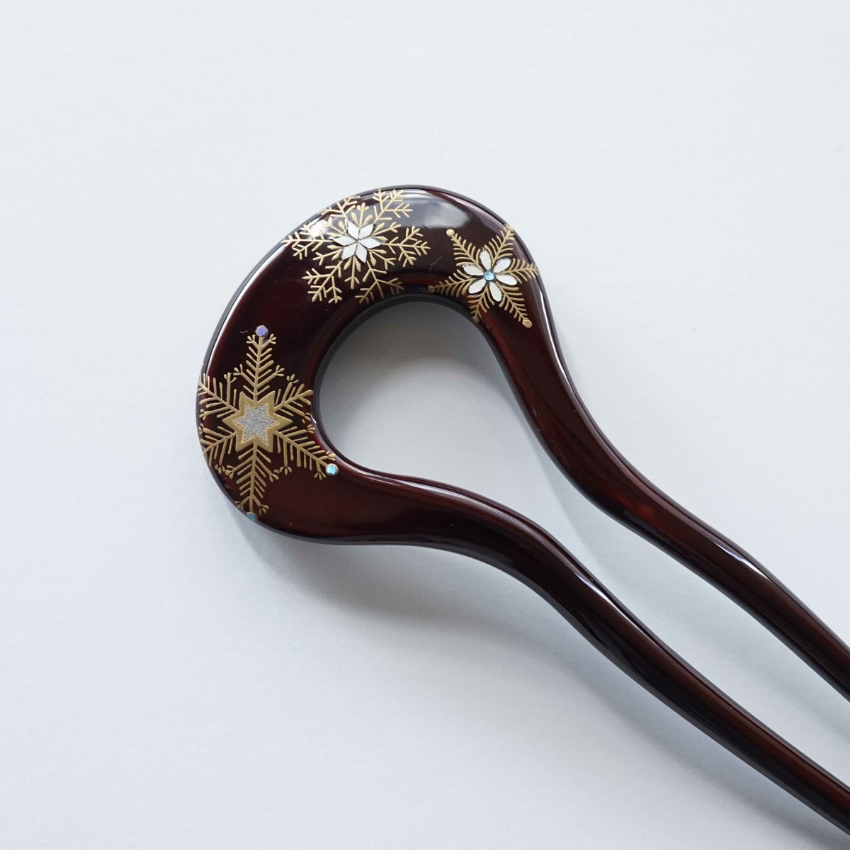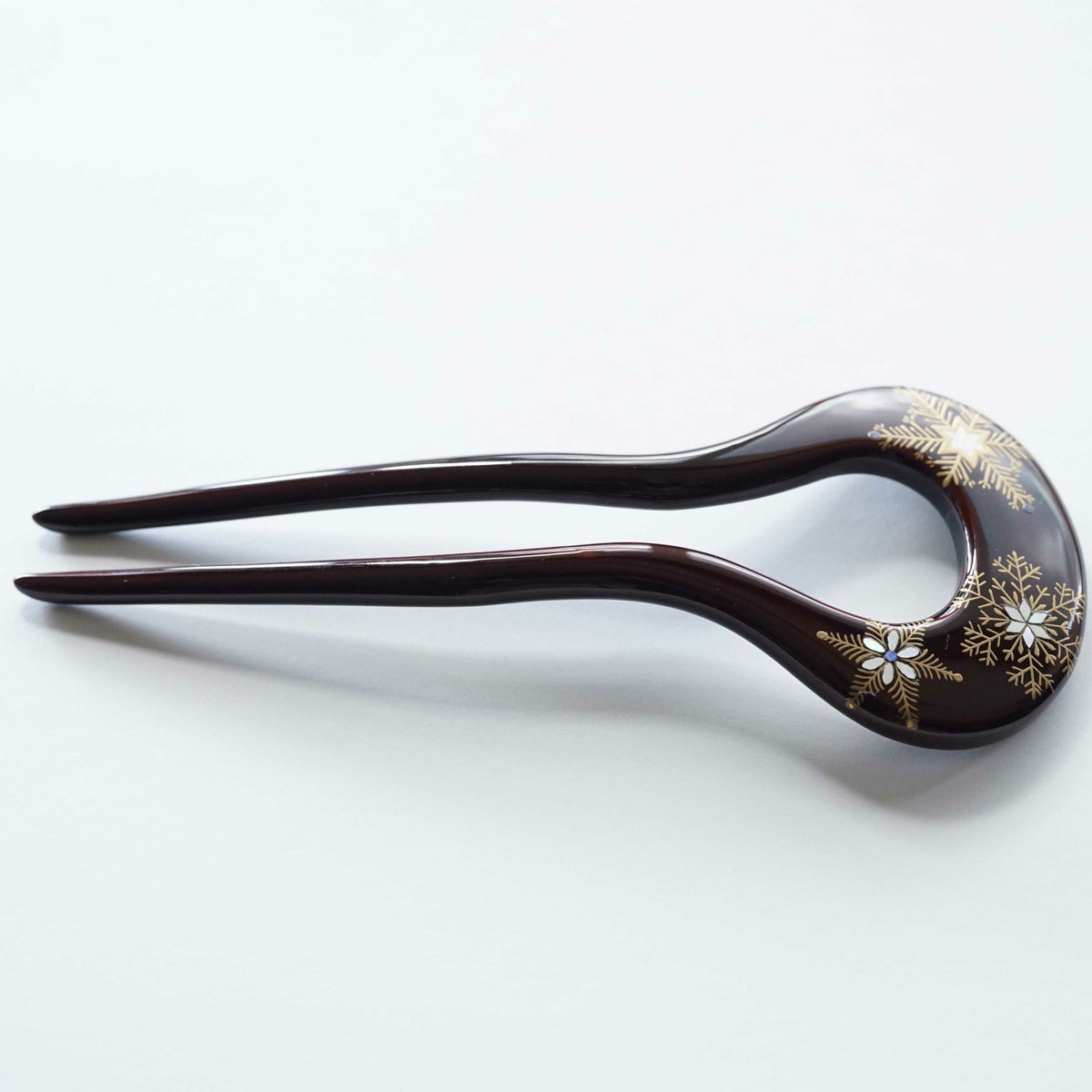 本漆純金蒔絵螺鈿かんざし 新角ピン 白玉椿文様
