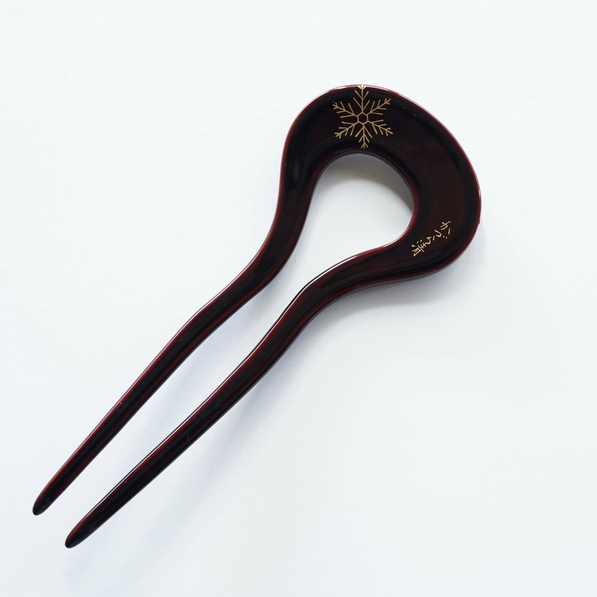 本漆純金蒔絵螺鈿かんざし 波型ピン(中) 白玉椿唐草文様