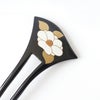 本漆純金蒔絵螺鈿かんざし 新角ピン 白玉椿文様