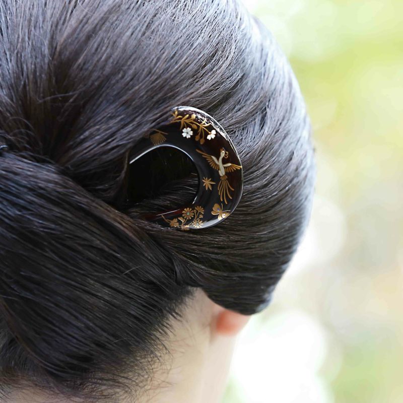 本漆純金蒔絵螺鈿かんざし 輪ピン(小) 桜文様(溜色)