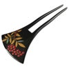 本漆純金蒔絵螺鈿かんざし 銀杏ピン 南天文様(黒色)