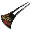 4. 本漆純金蒔絵螺鈿かんざし 銀杏ピン 南天文様(黒色)