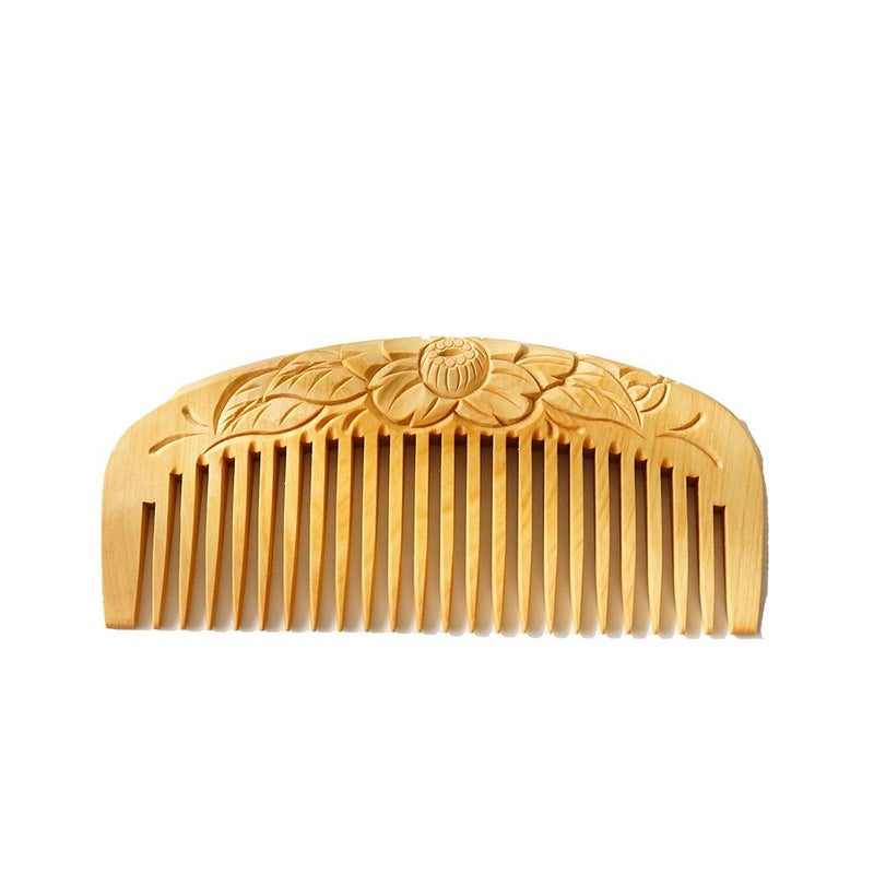 【つげ櫛】彫りパーマ櫛 (椿)3寸8分