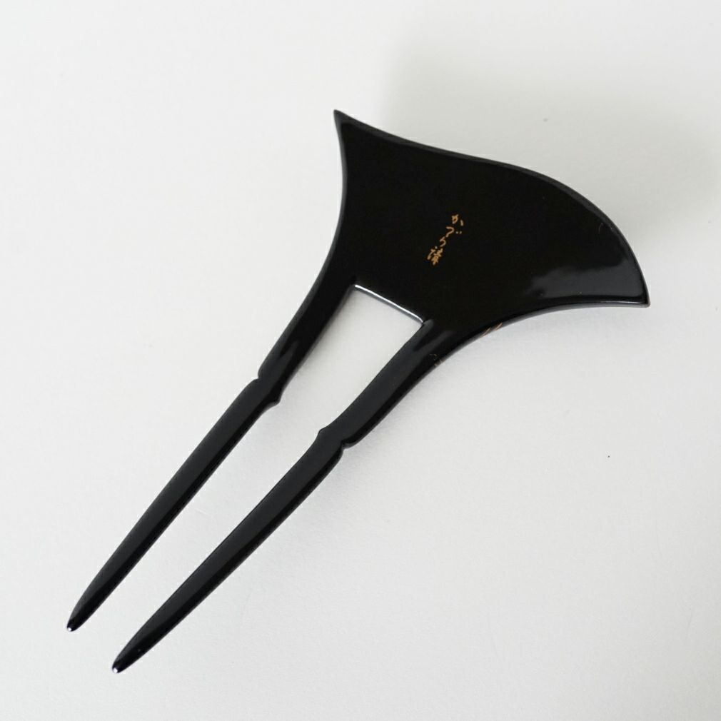 本漆純金蒔絵螺鈿かんざし 波型ピン(中) 白玉椿唐草文様