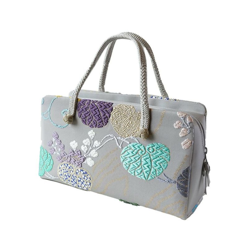 色合いが鮮やかな菊と葵の上質な唐織和装バッグ