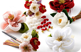 かんざしや髪飾りは、テレビや雑誌などでも取り上げて頂くことも多く、有名女優や人気モデルの髪を彩るお手伝いをしています。