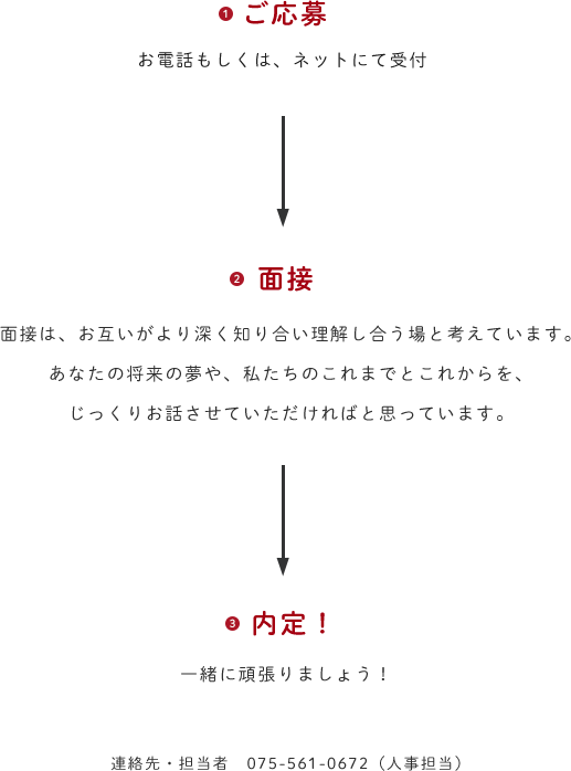 TEL 075-561-0672(人事担当)までお気軽にどうぞ。