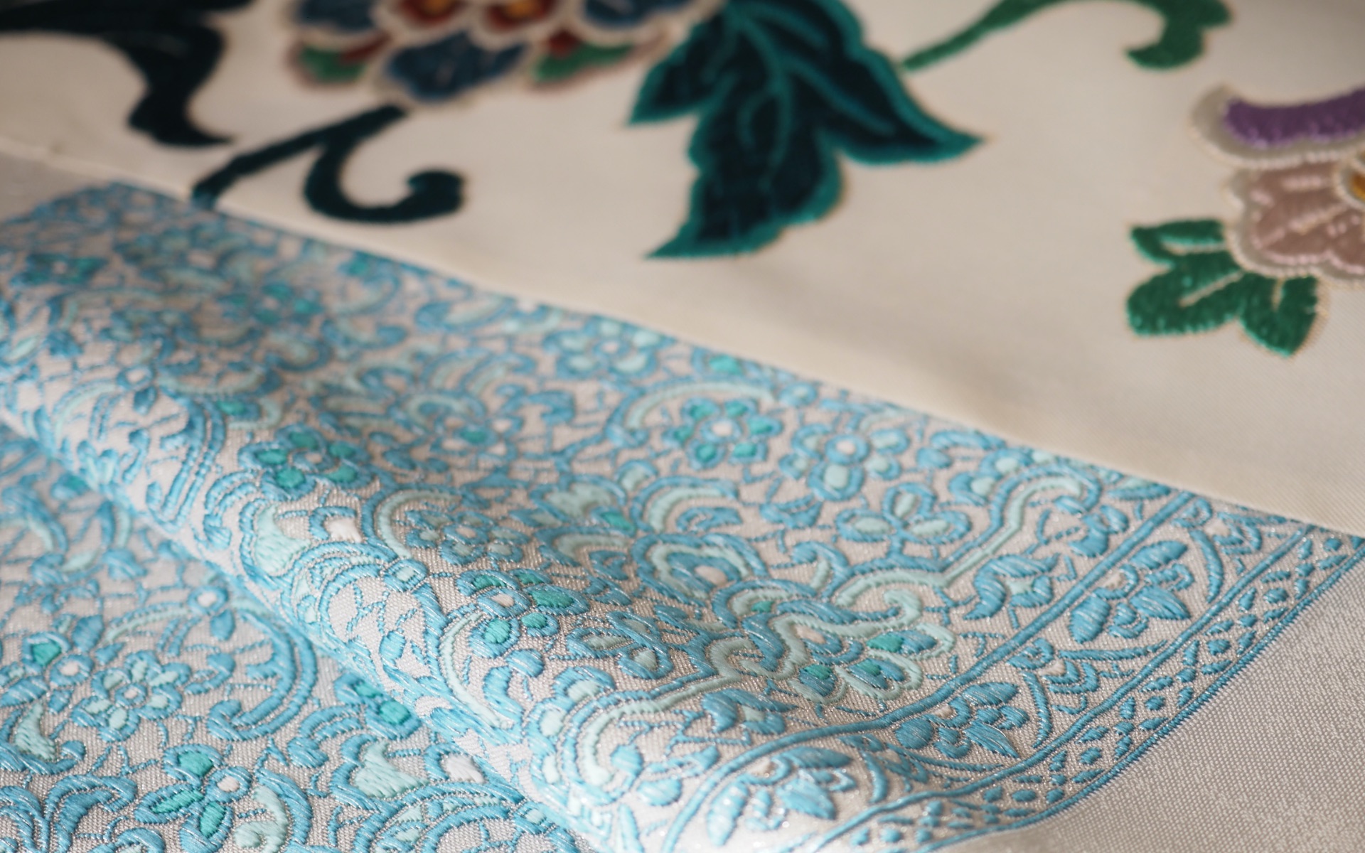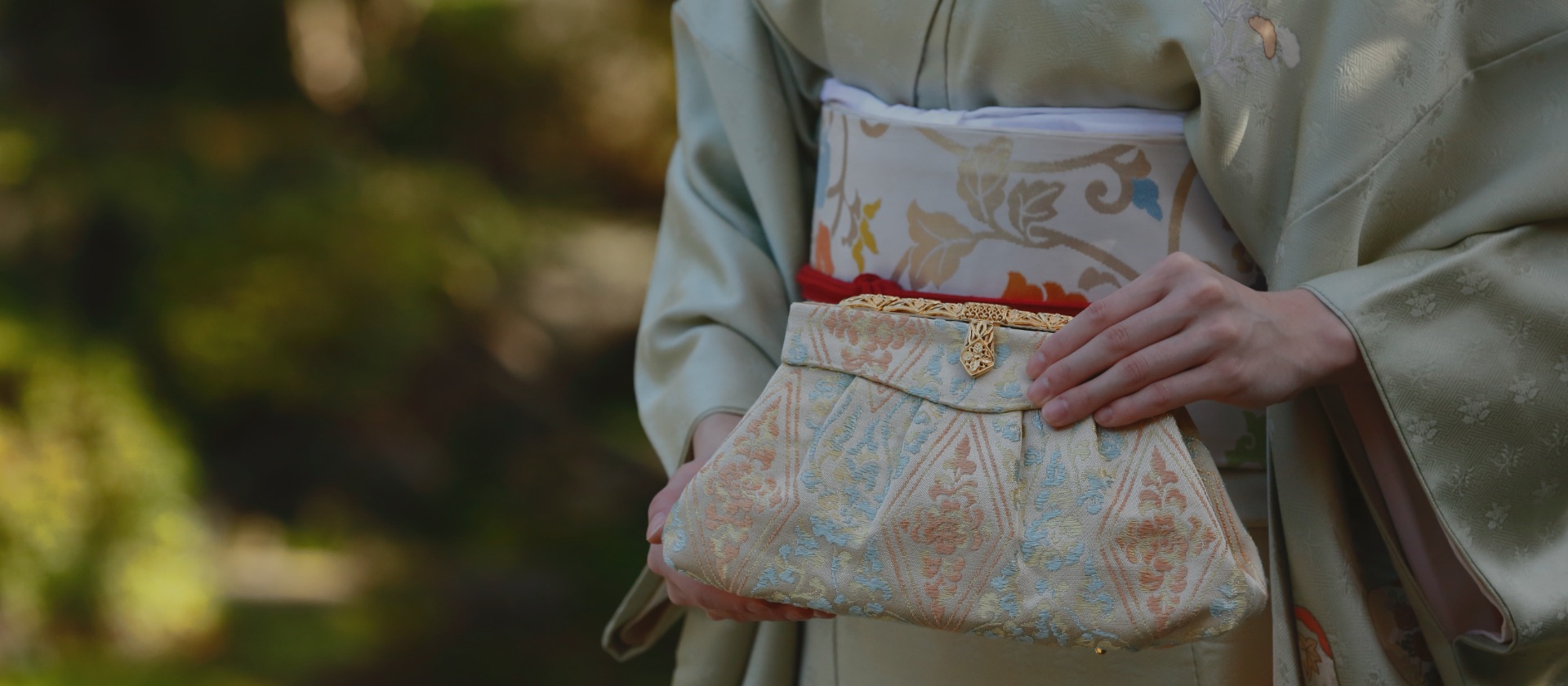 かづら清の和小物は、美しく艶やかに染められた色糸を使って京都・西陣の地で作られる西陣織を中心に、刺繍や押絵といった様々な技法を用いて創り上げられています。