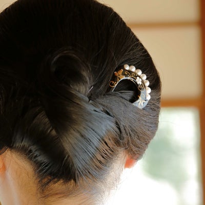 本べっ甲 純金蒔絵螺鈿かんざし 松竹梅文様(パール付き)輪ピンのレビューを書く