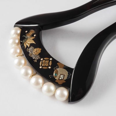 本べっ甲 純金蒔絵螺鈿かんざし 宝尽くし文様(パール付き)輪ピンのレビューを書く