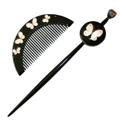 本漆純金蒔絵螺鈿 櫛・平打ちセット 蝶文様(白蝶貝)のレビューを書く
