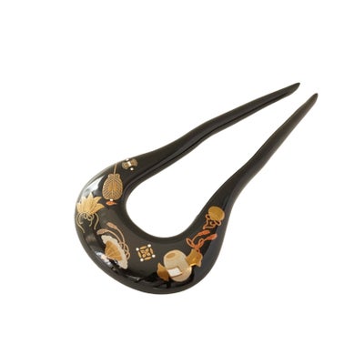 本漆純金蒔絵螺鈿かんざし 輪ピン(中) 宝尽くし文様のレビューを書く