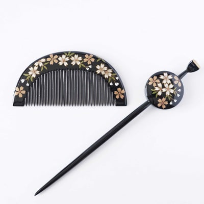 本漆純金蒔絵螺鈿かんざし 櫛・平打ちセット 桜文様のレビューを書く