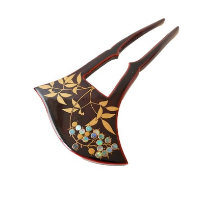 本漆純金蒔絵螺鈿かんざし 波型ピン(中) 南天文様(溜色)のレビューを書く
