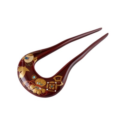 本漆純金蒔絵螺鈿かんざし 輪ピン(中) 宝尽くし文様(溜色)のレビューを書く