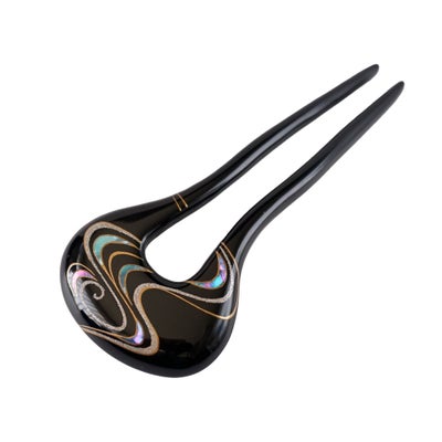本漆純金蒔絵螺鈿かんざし 幅広輪ピン 流水文様(黒)のレビューを書く
