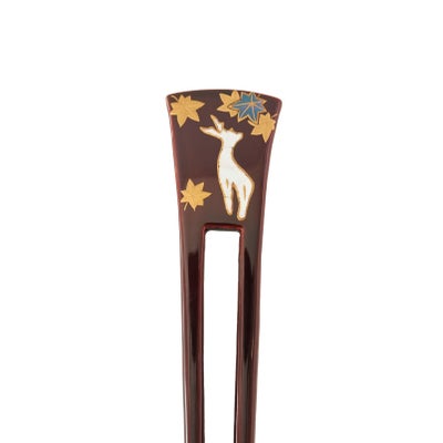 本漆純金蒔絵螺鈿かんざし 角ピン 鹿に紅葉文様(溜色)のレビューを書く
