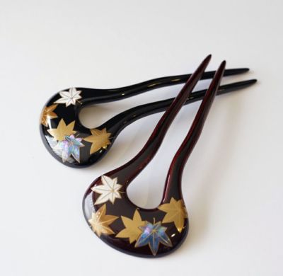 本漆純金蒔絵螺鈿かんざし 幅広輪ピン 紅葉文様のレビューを書く
