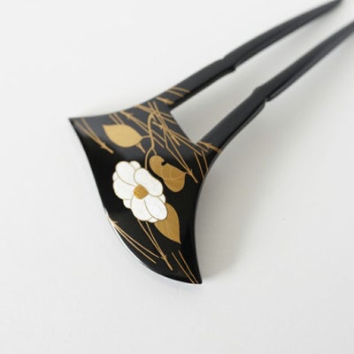 本漆純金蒔絵螺鈿かんざし 波型ピン(大) 白玉椿に松葉のレビューを書く