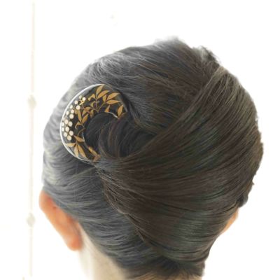 本漆純金蒔絵螺鈿かんざし 輪ピン(中) 南天文様(黒色)のレビューを書く